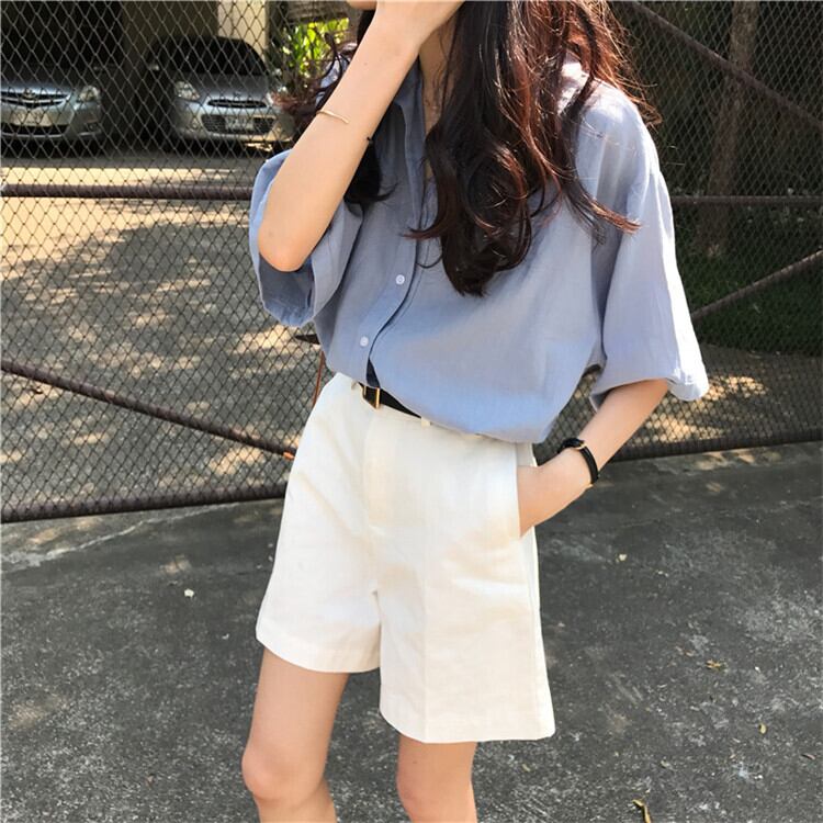 ブルーカジュアルシャツ 薄手ジャケット サマートップス 夏物 モンロー1142707714