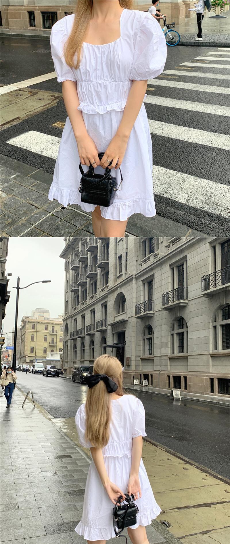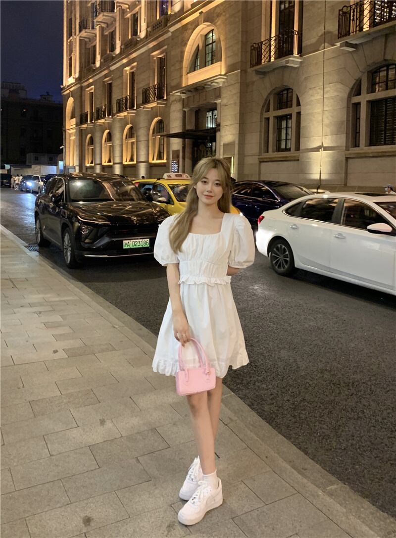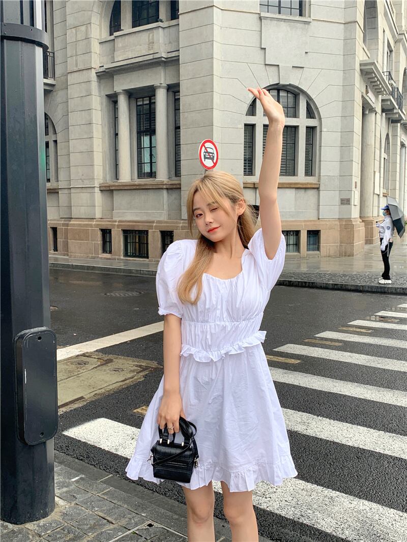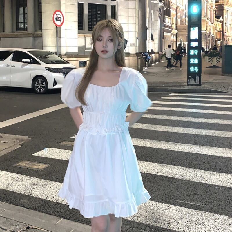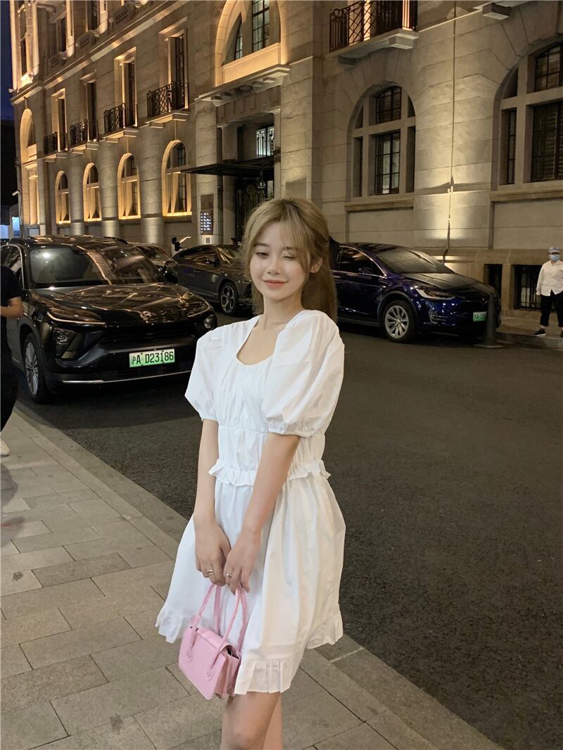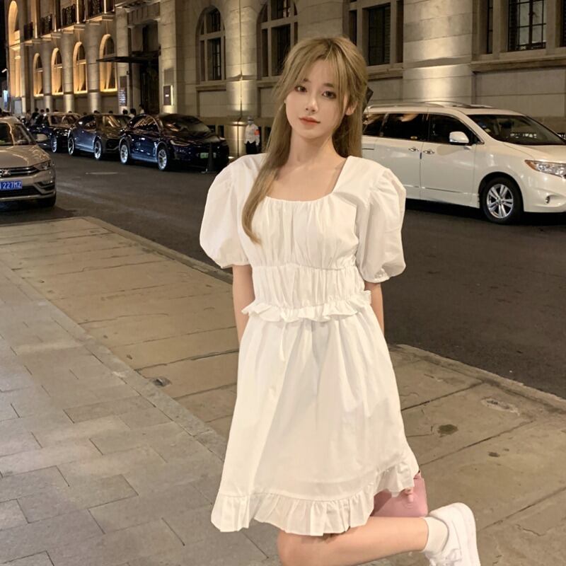 スリーブドレス サマーカラースカート 大人ガーリー スウィート キュート カジュアル 夏物 スクウェア モンロー21386458434