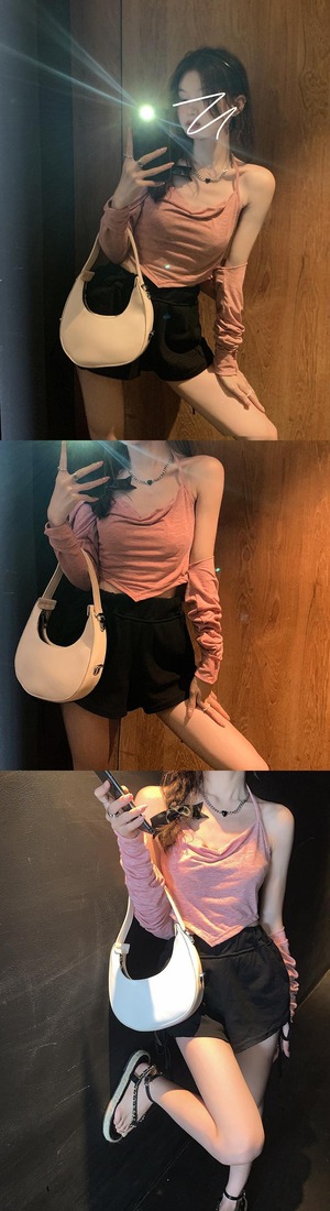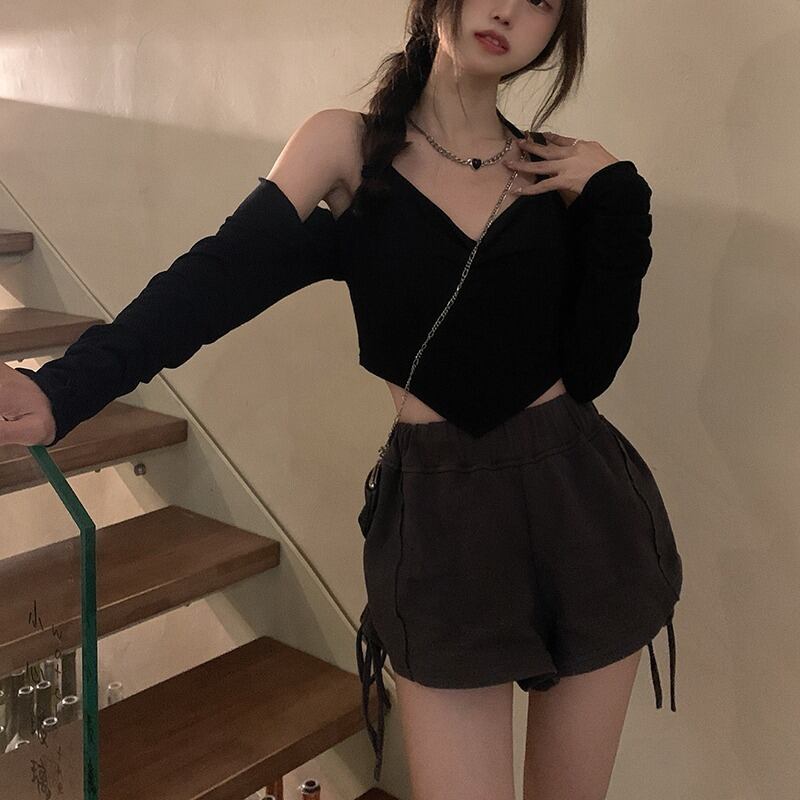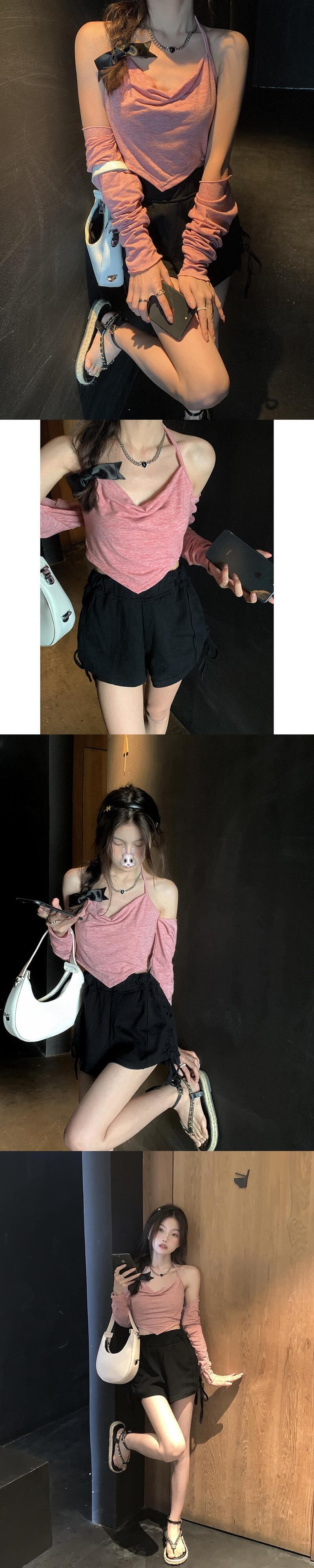 色:黒いチューブトップ,ガーリーピンクのチューブトップ,黒の長袖カーディガン,ガールピンクの長袖カーディガン,黒巾着パンツ,グレーのドローストリングパンツ