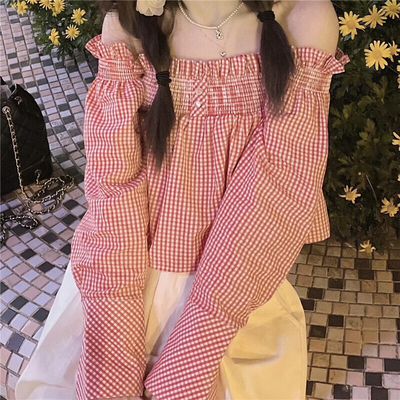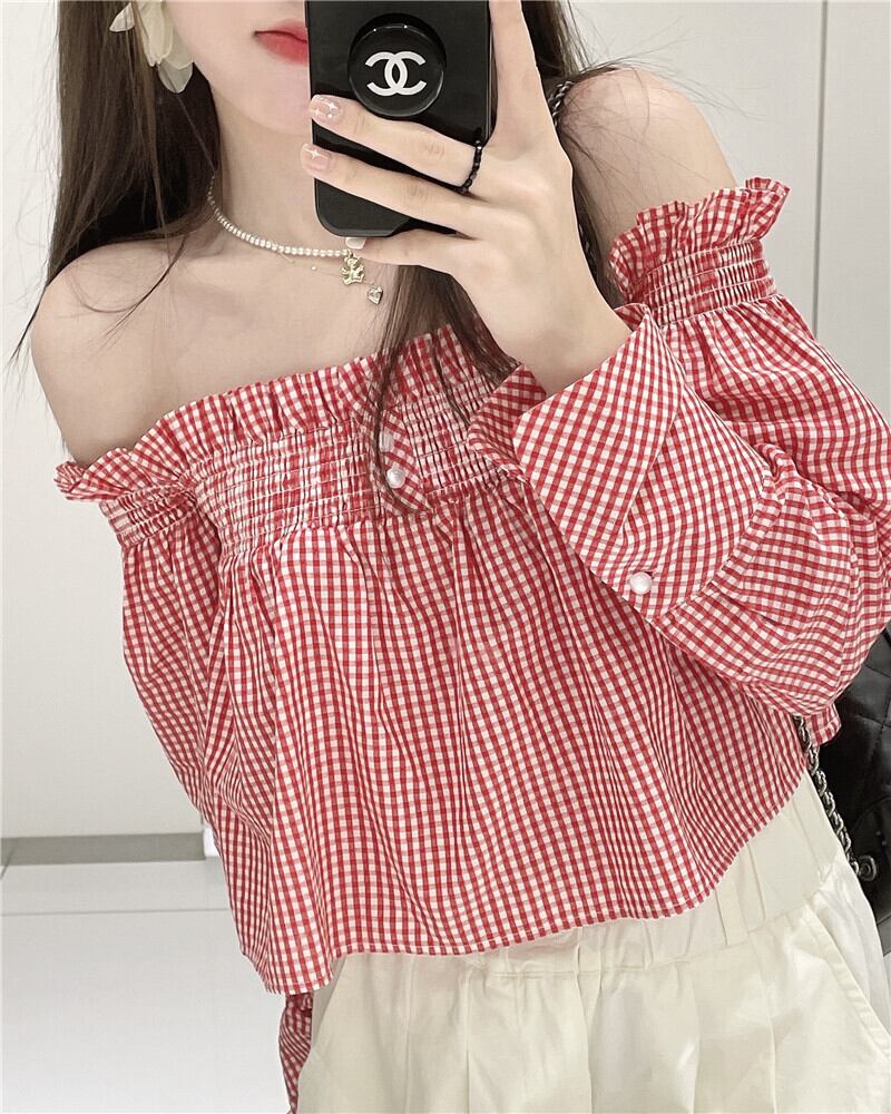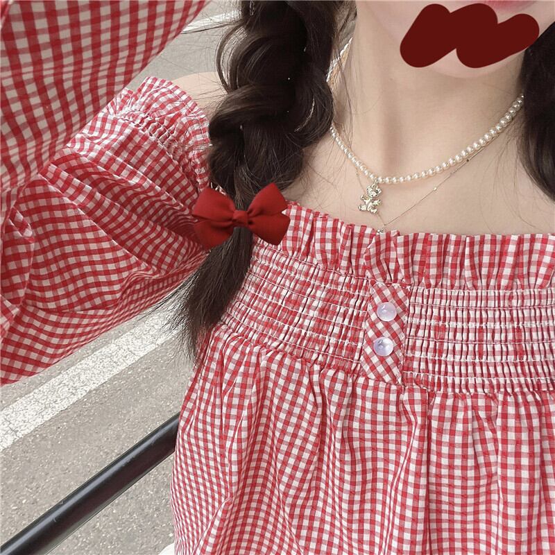 ショートトップス シャツ サマー格子柄スタンダードジャケット ロング レトロ 大人ガーリー スウィート キュート カジュアル 夏物 モンロー52128963239