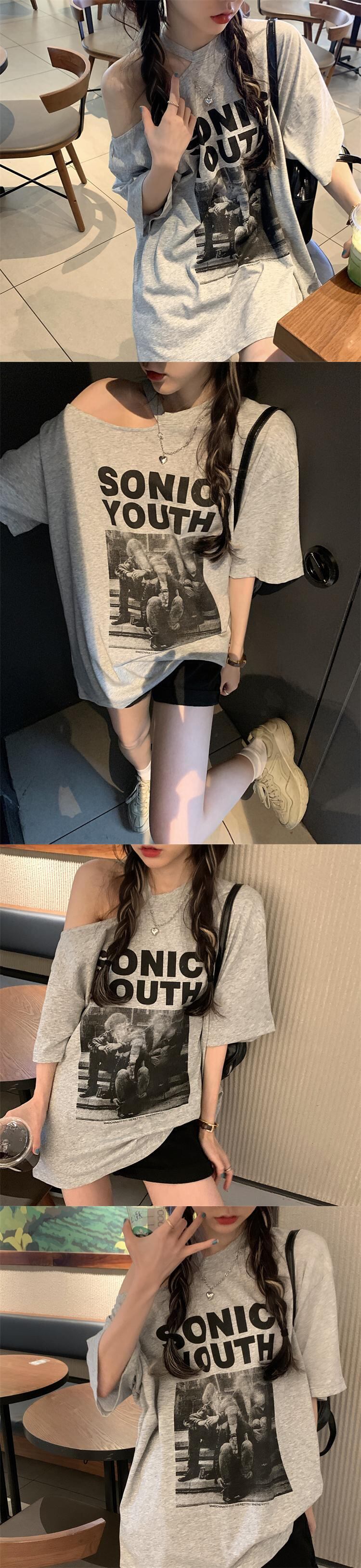 スタイルスタンダードルーズTシャツ サマーカジュアルプリントトップス レトロ かわいい 夏物 モンロー89986281239