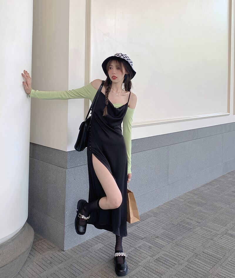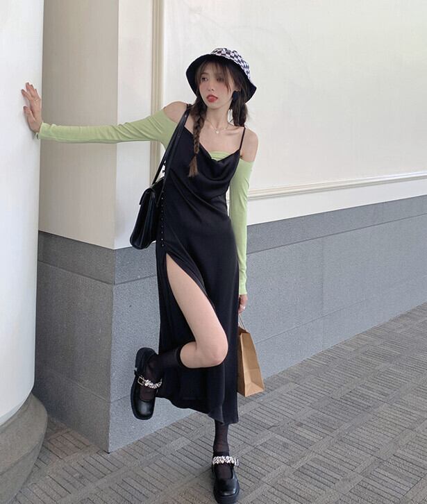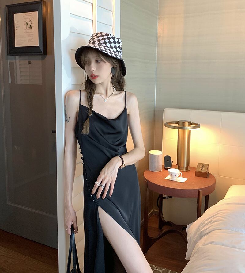 サイドスリットブラックドレス サマーウェストスカート 夏物 モンロー58879820170