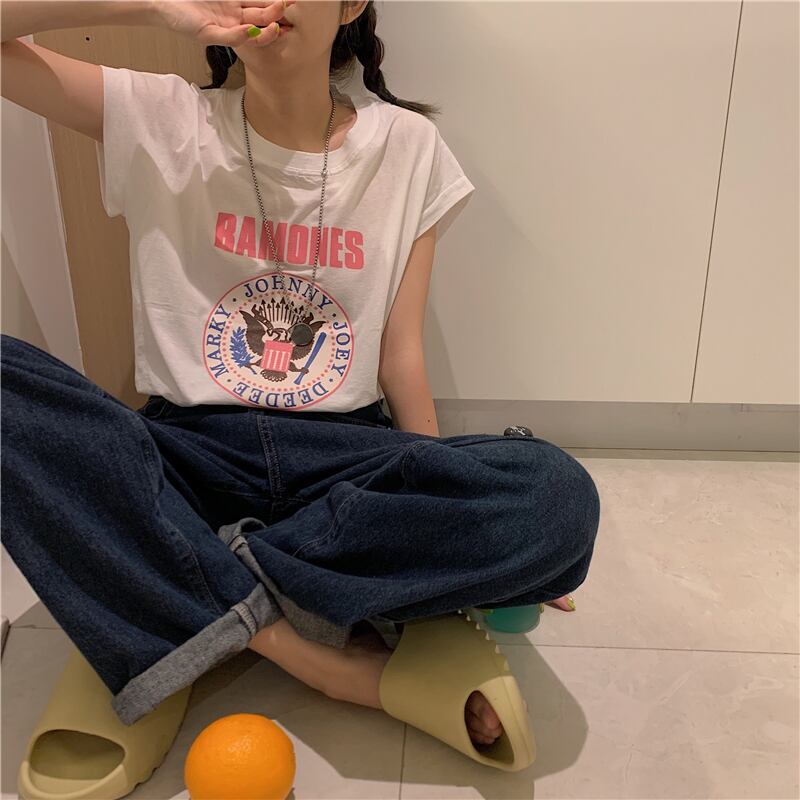 ホワイトルーズTシャツ 薄手スタイルサマーノースリーブ 夏物 モンロー61241601498