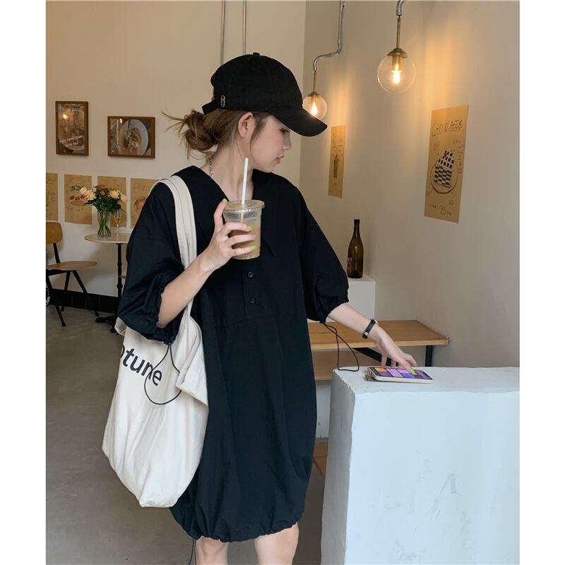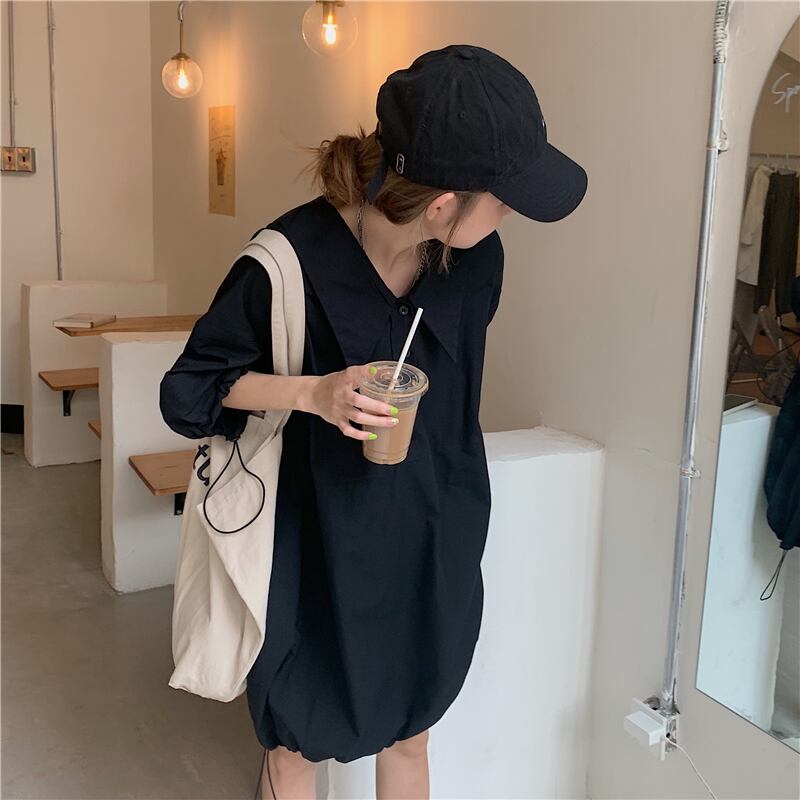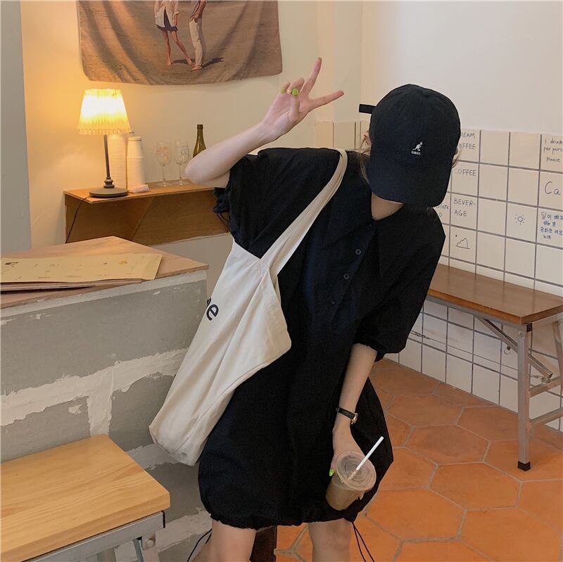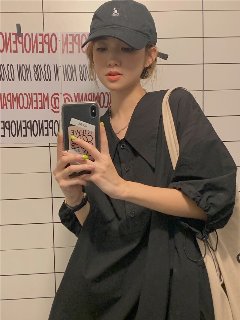 ブラックカラールーズシャツ ドレス サマーショートスカート ストリート 夏物 モンロー10662198879