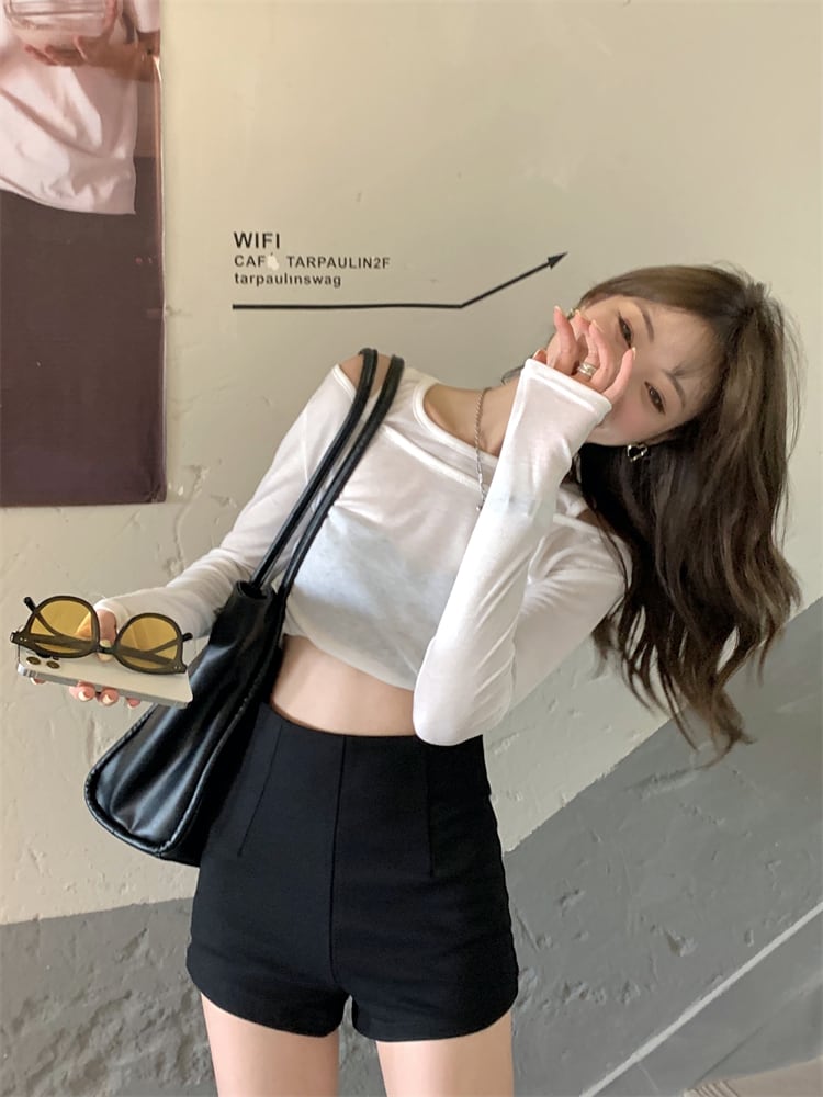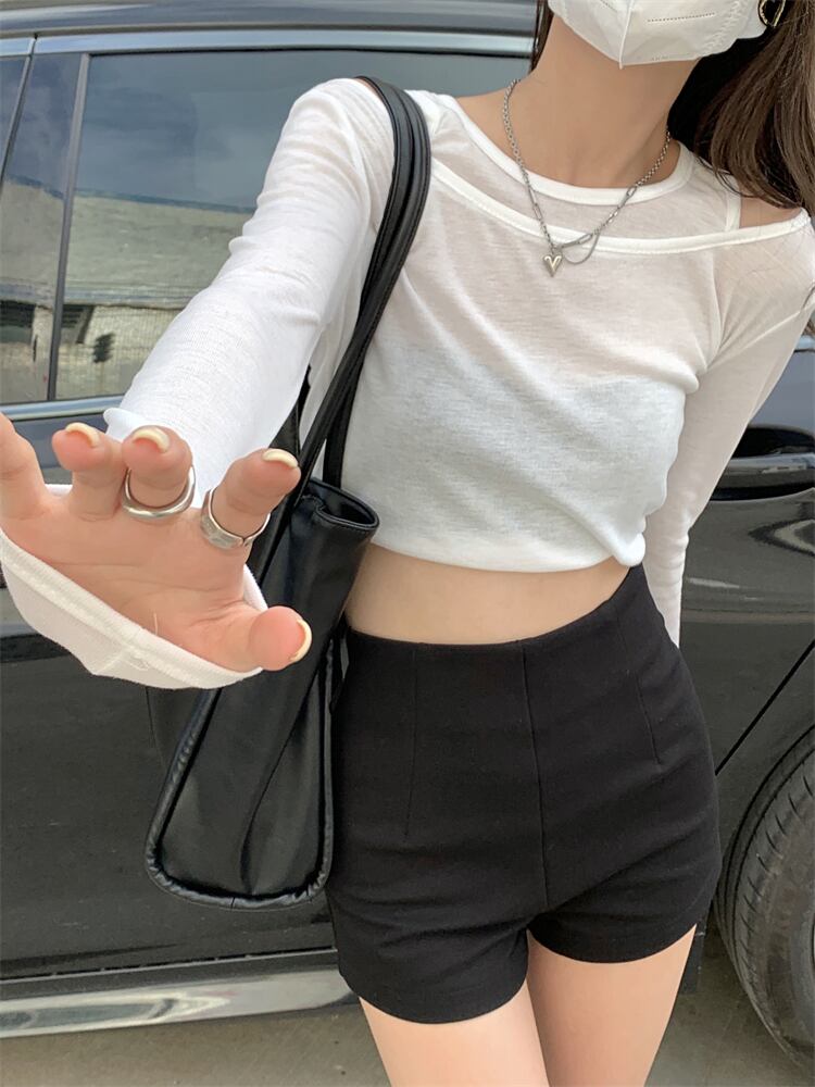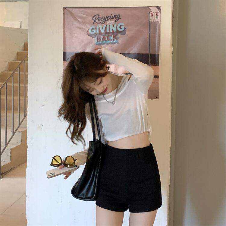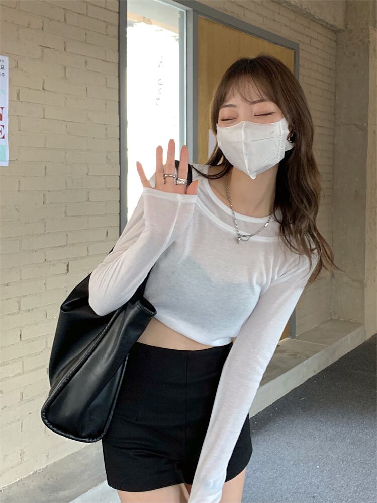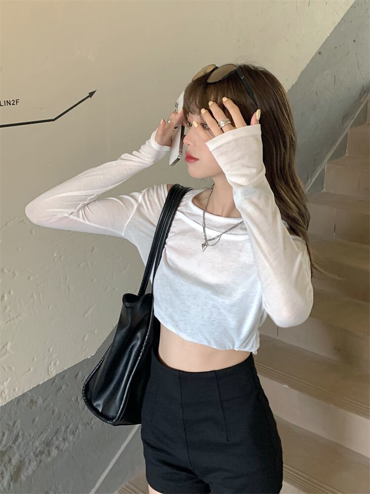 スリム薄手サマーホワイトカジュアルトップス ロング シャツ 夏物 Tシャツ モンロー15598459563