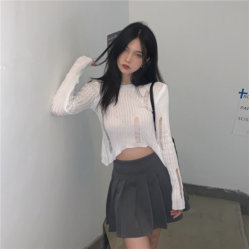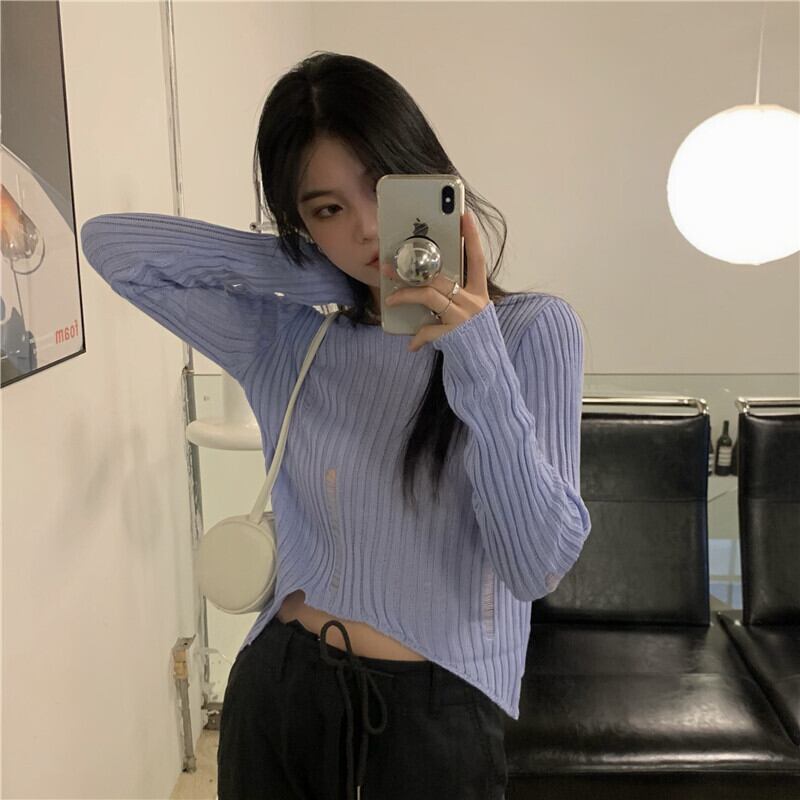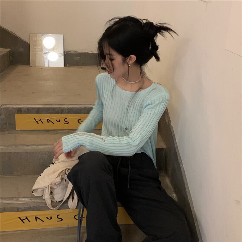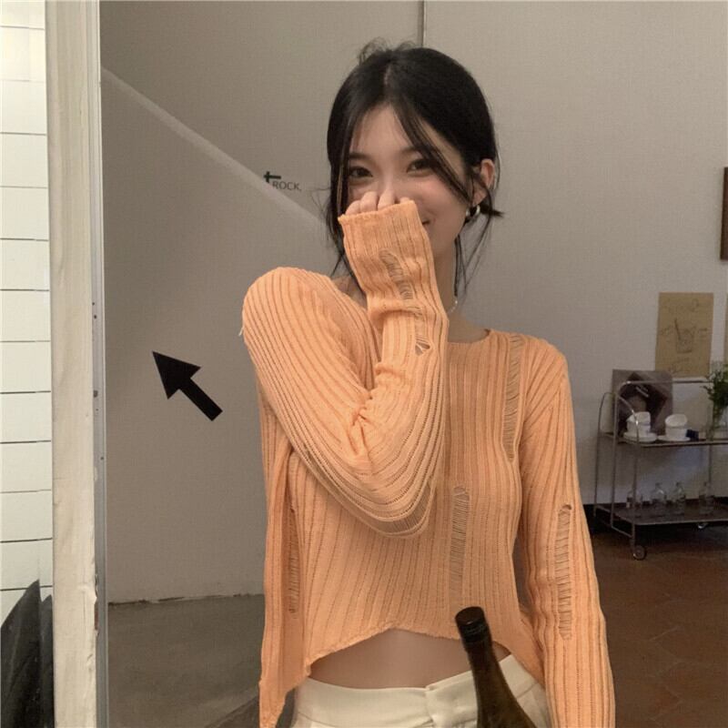 ホワイト薄手セーター シャツ サマートップス ロング 夏物 モンロー50185042021