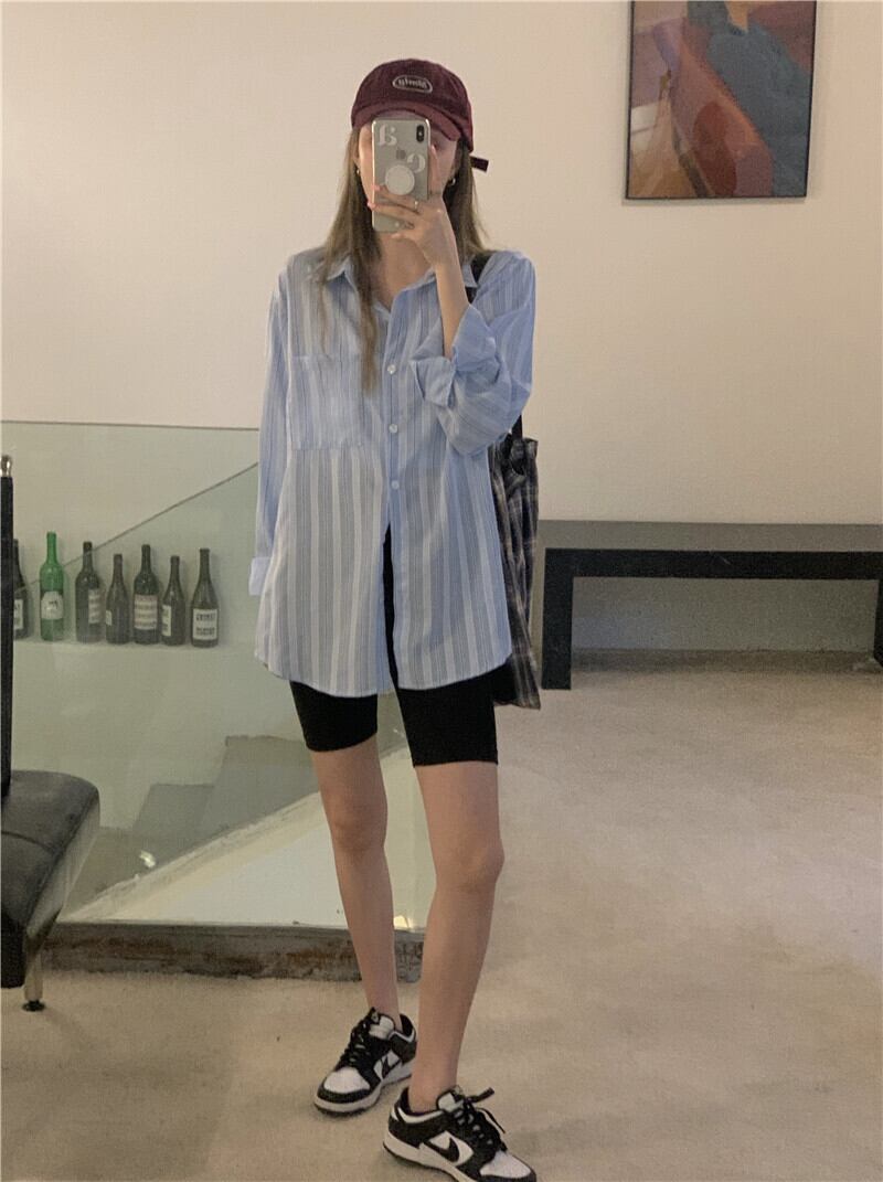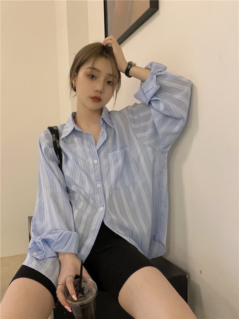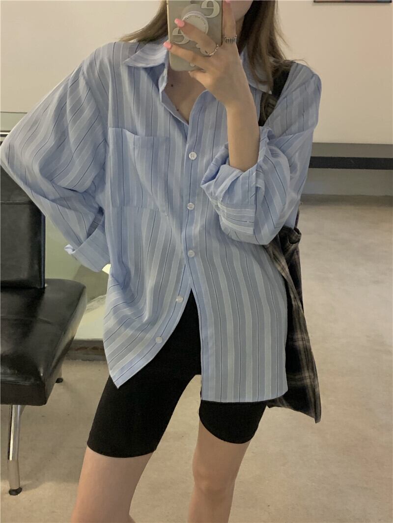 スタンダードストライプルーズシャツ トップス サマー レトロ 夏物 モンロー71888425682