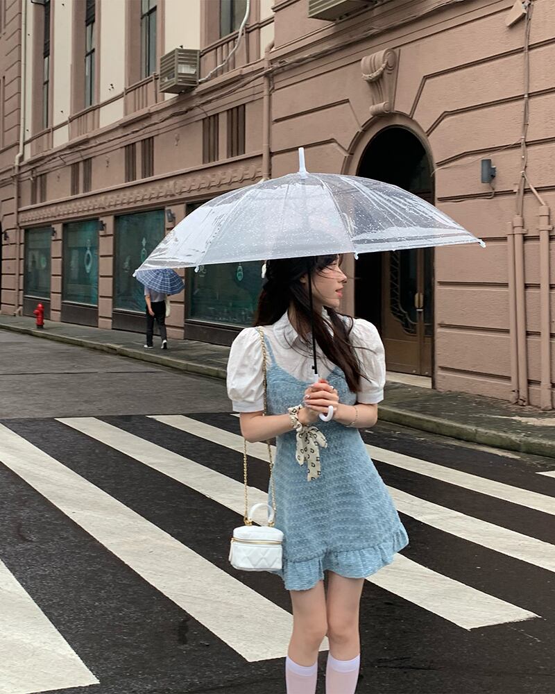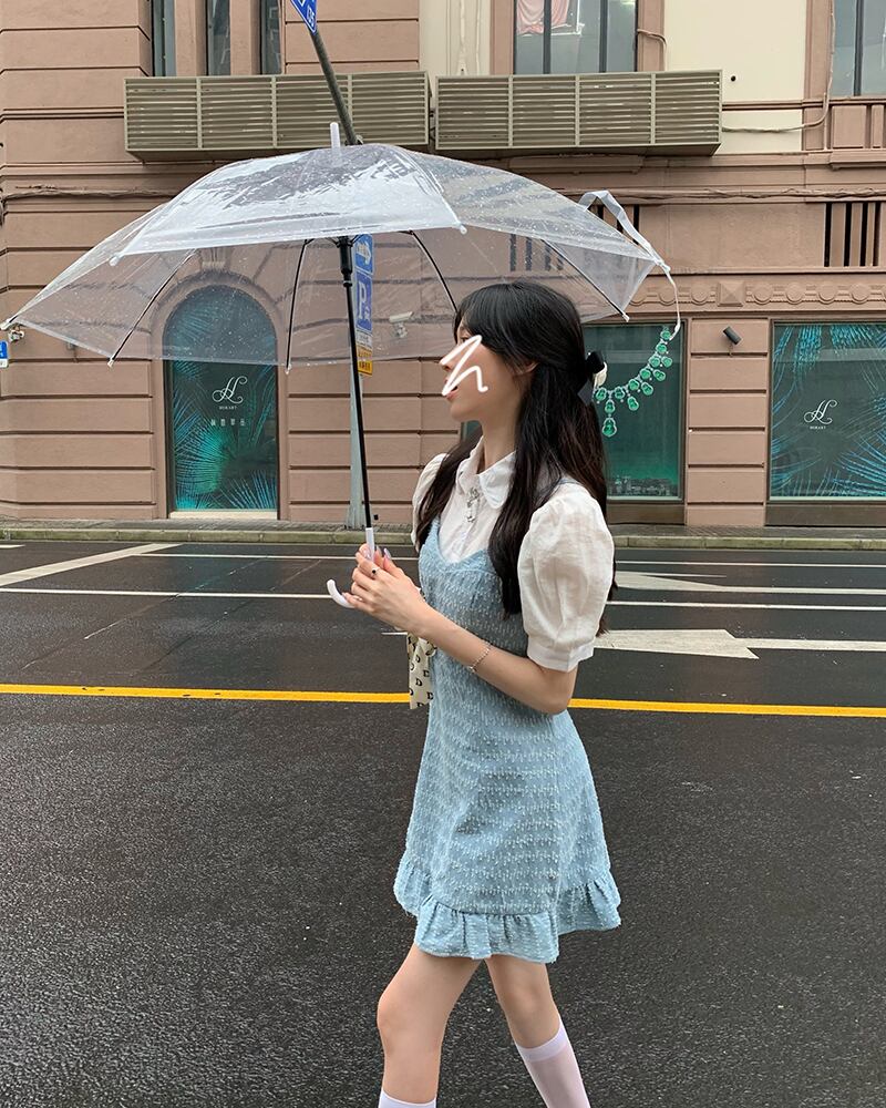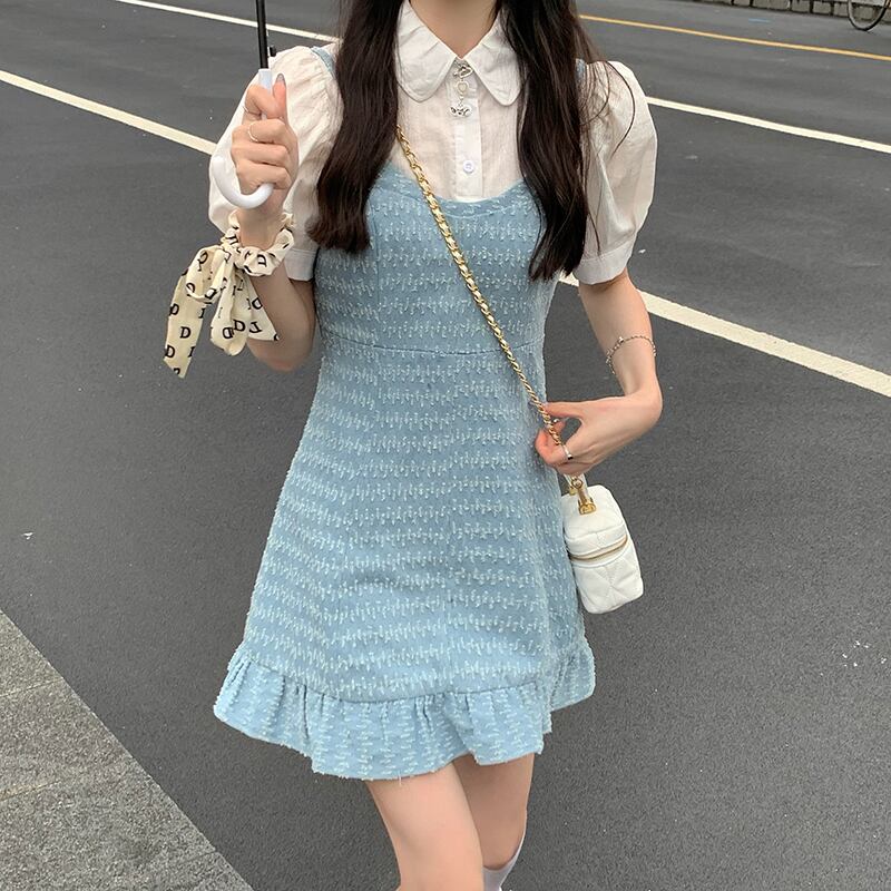 サマーブルードレス ウェスト薄手スカート 夏物 モンロー86440815021