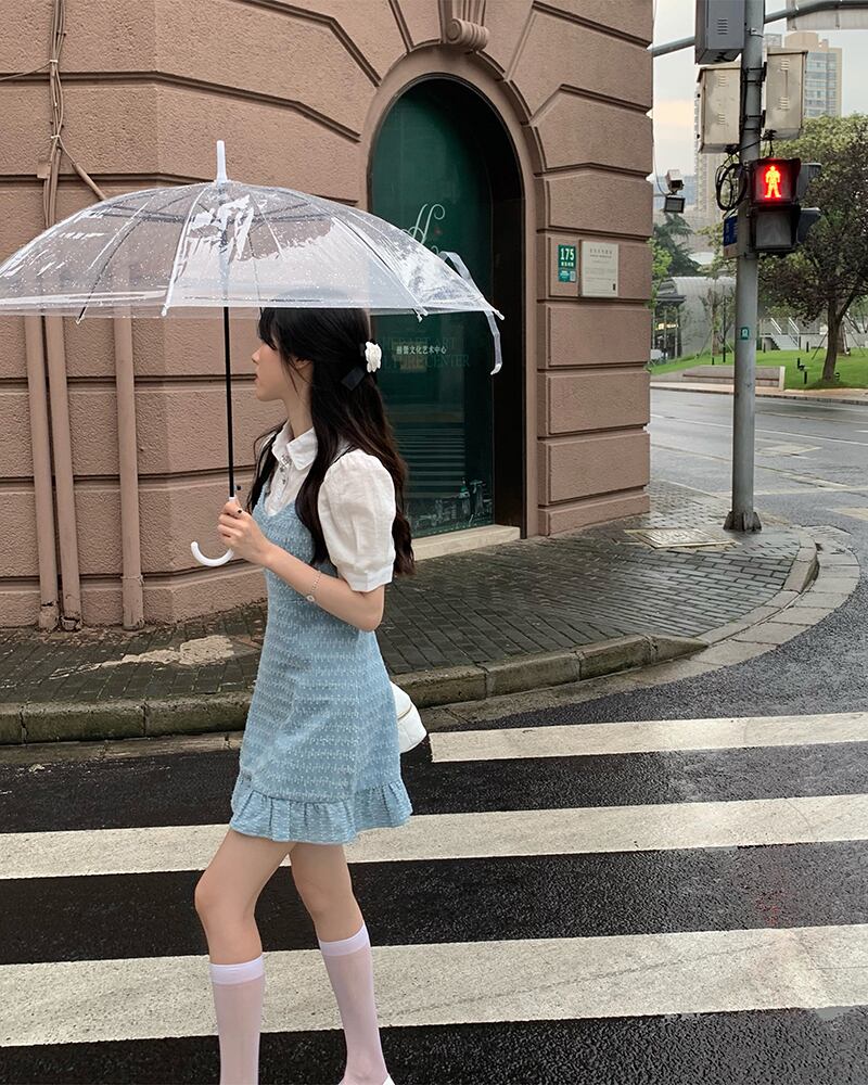 色:ライトブルーのサスペンダースカート9520,白いシャツ11686