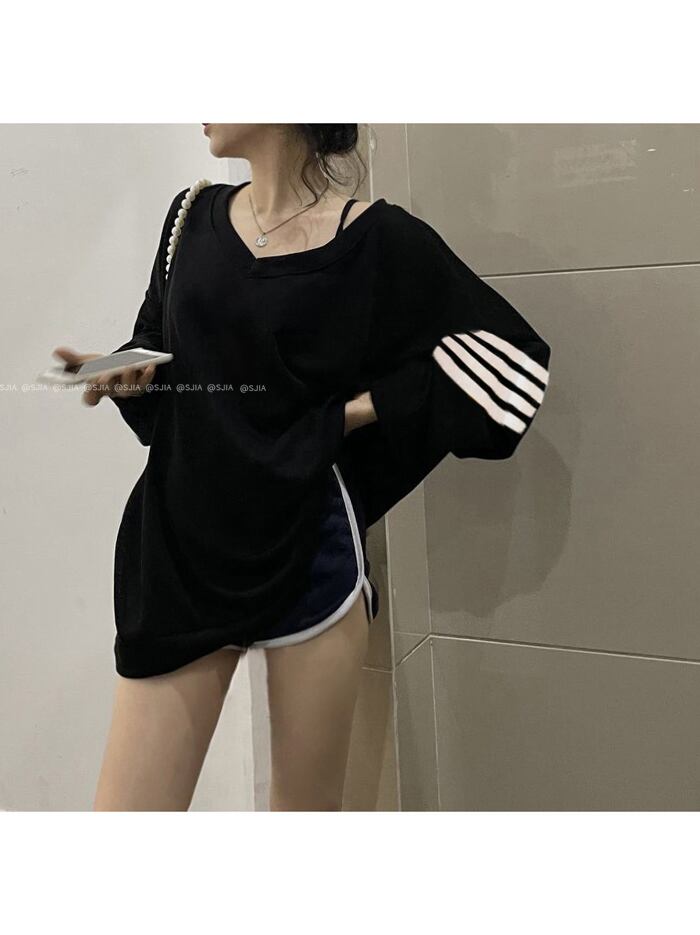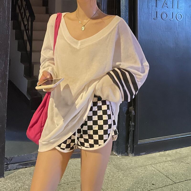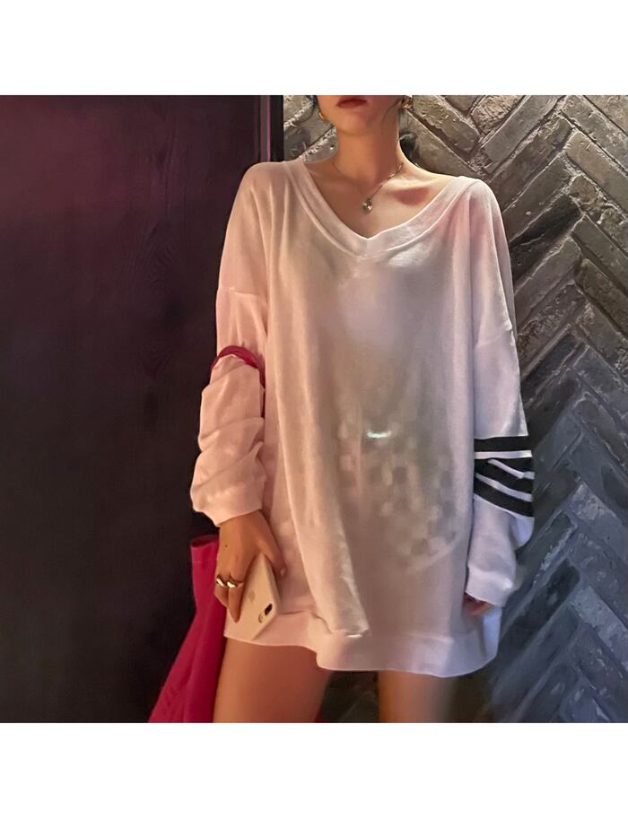 スタイルルーズ薄手VネックTシャツ シャツ サマーカジュアル ロング 夏物 モンロー14976283348