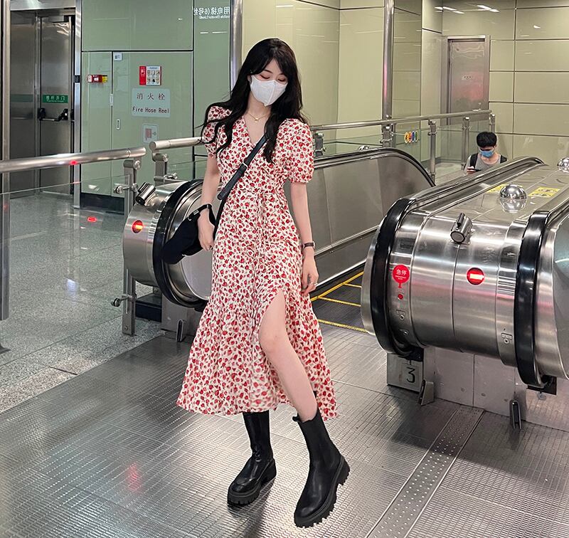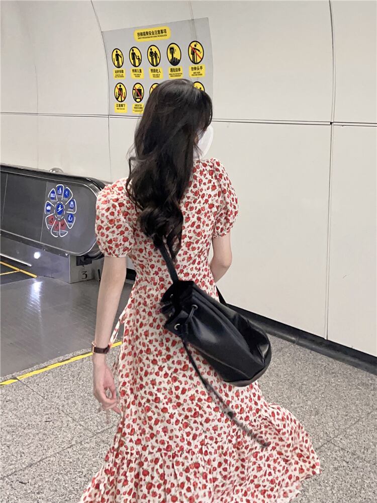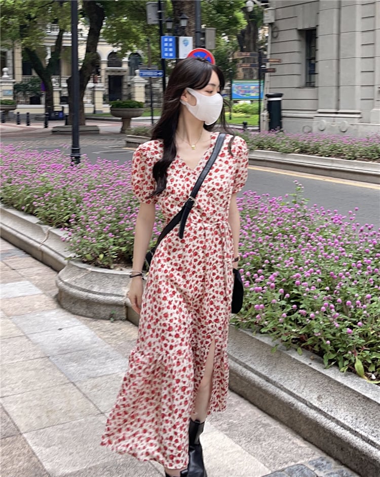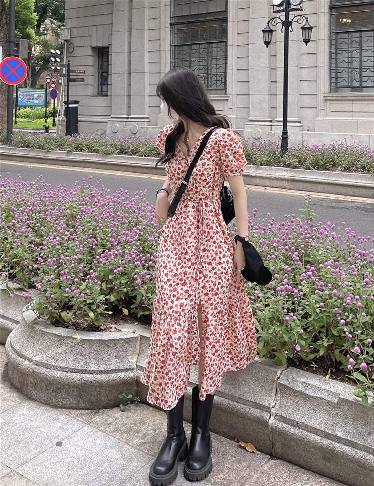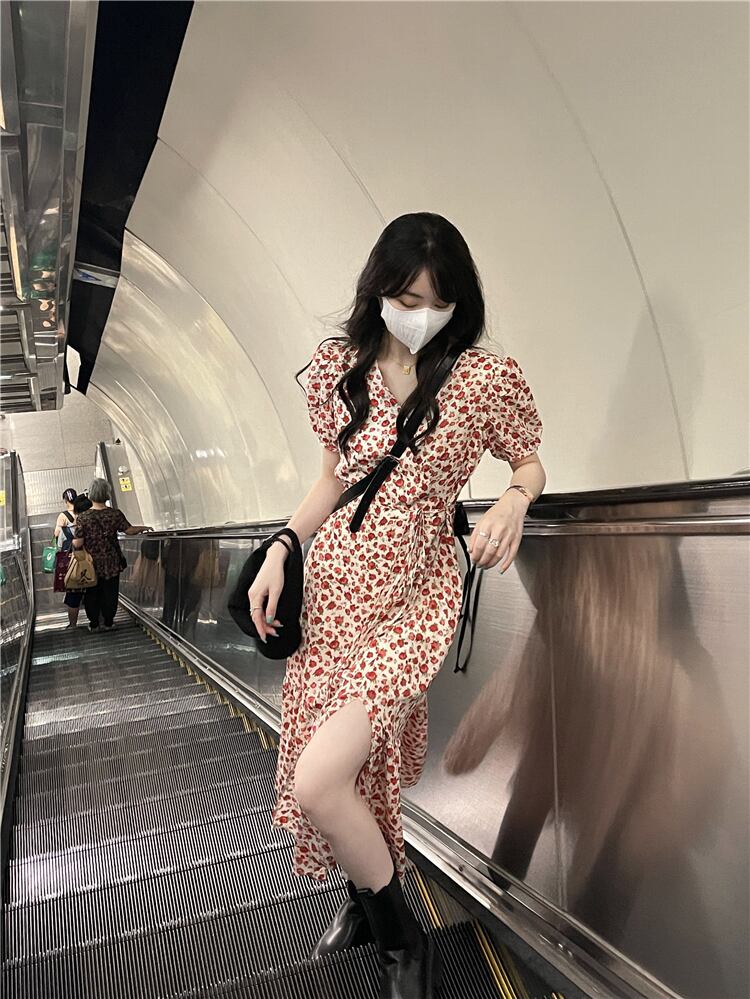 Vネックフローラルドレス サマースタイルスリムフィットスカート 大人ガーリー スウィート キュート カジュアル 夏物 花柄 モンロー11765302515