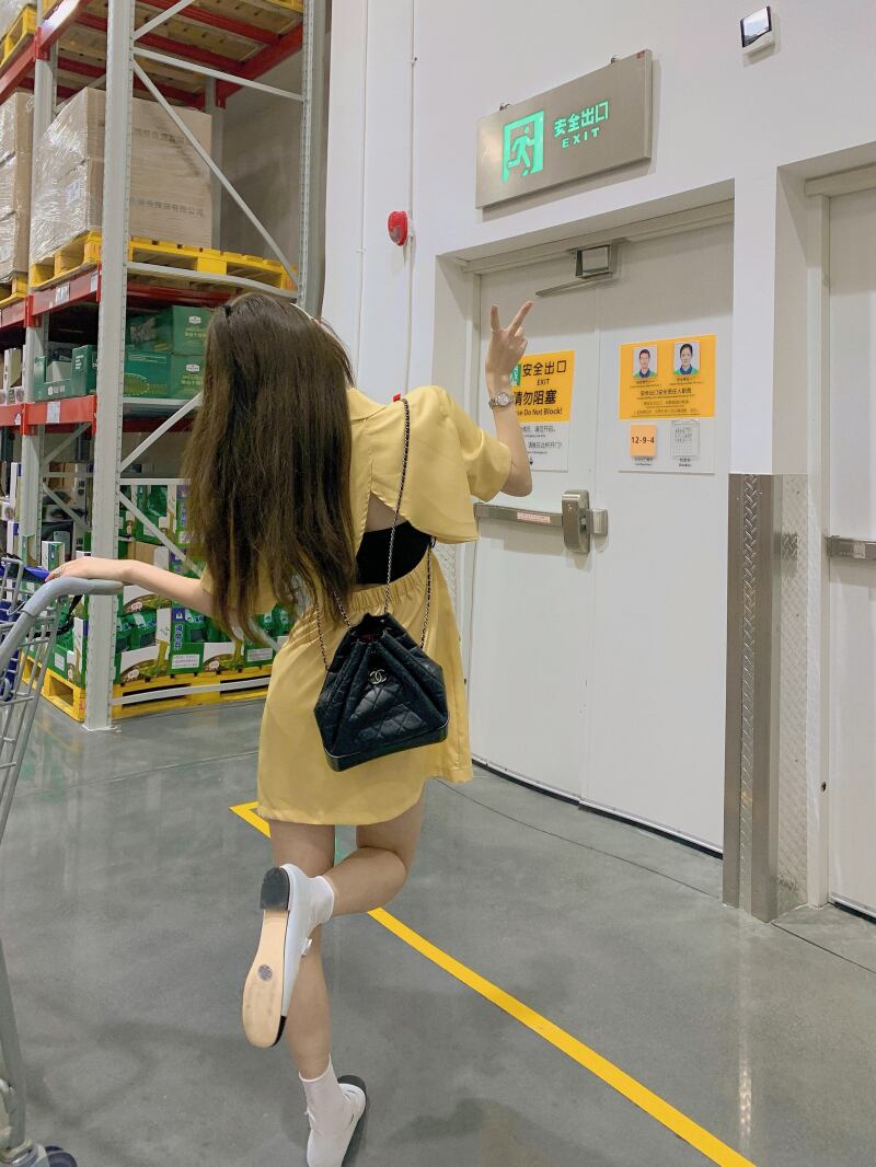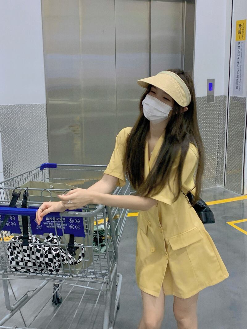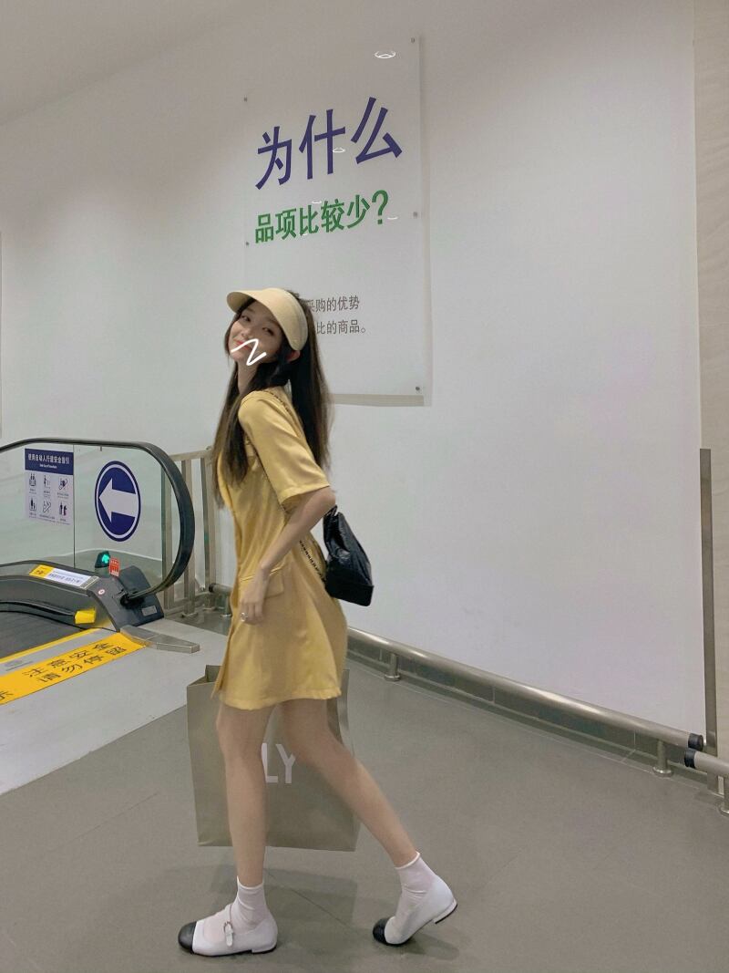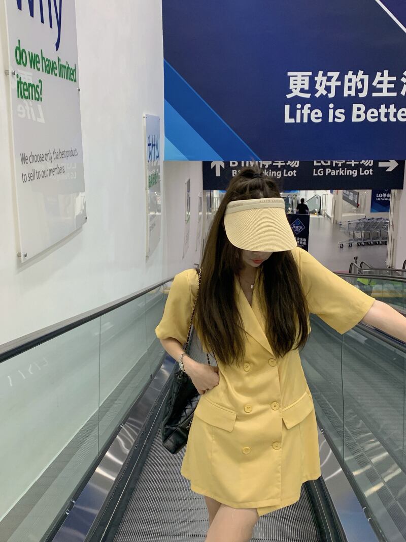 サマーイエロースカート スリットバックドレス 夏物 モンロー22436104401
