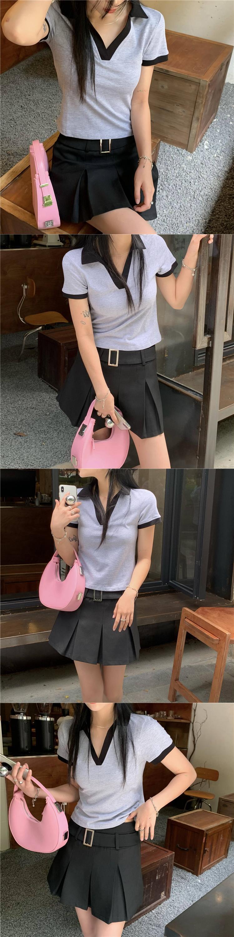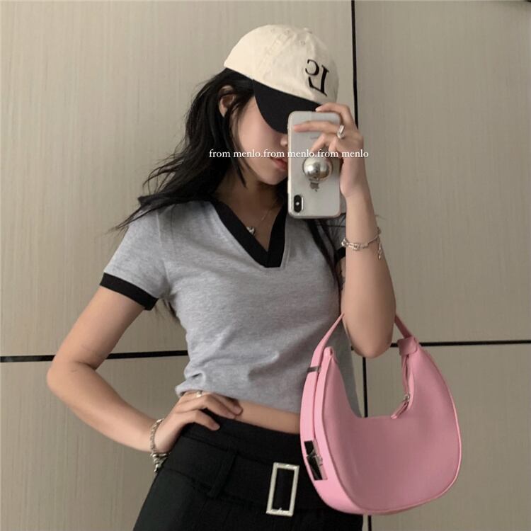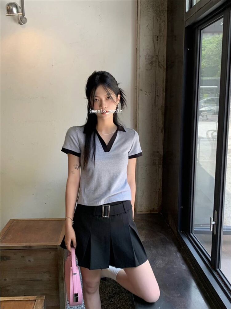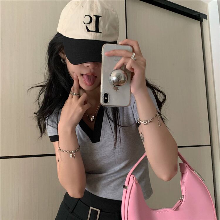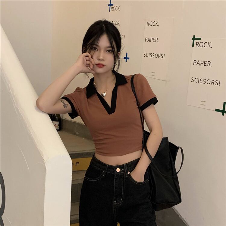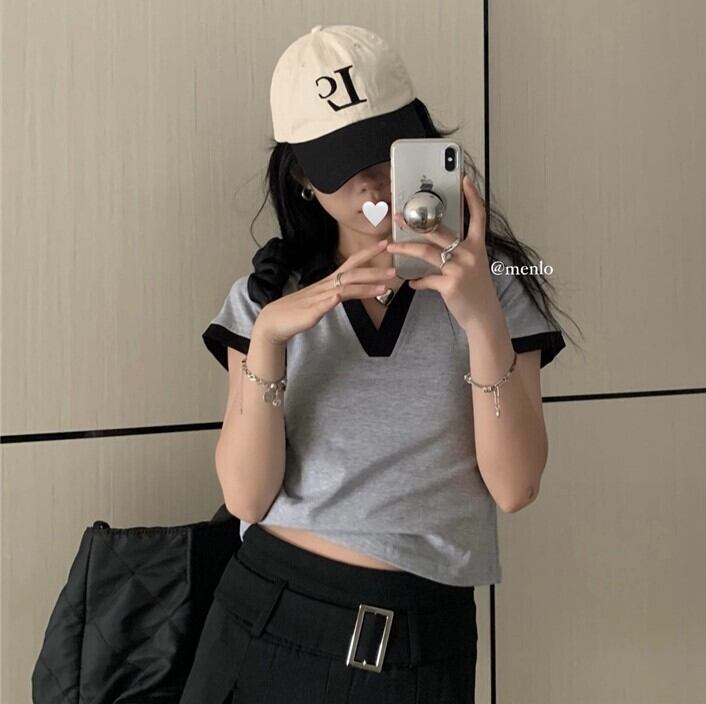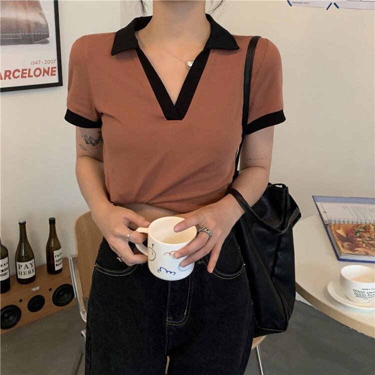 スリムカラーTシャツ サマー薄手トップス 夏物 モンロー39738766264