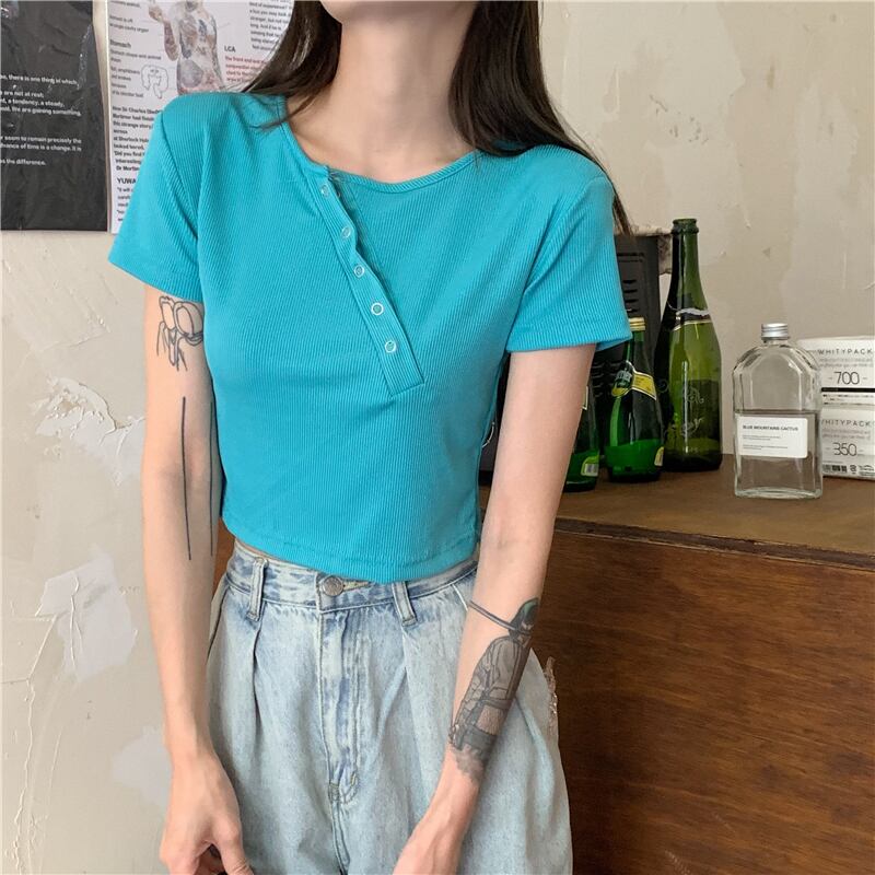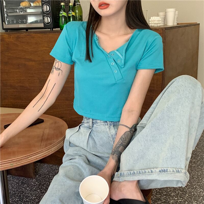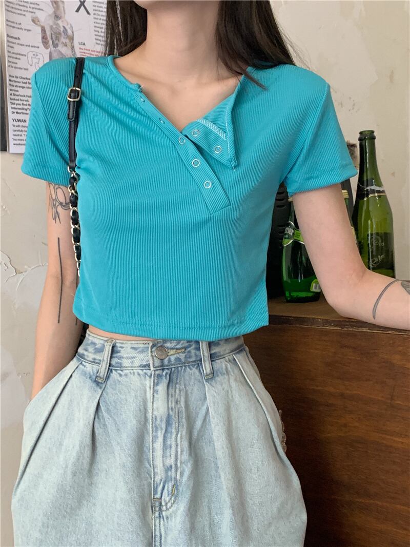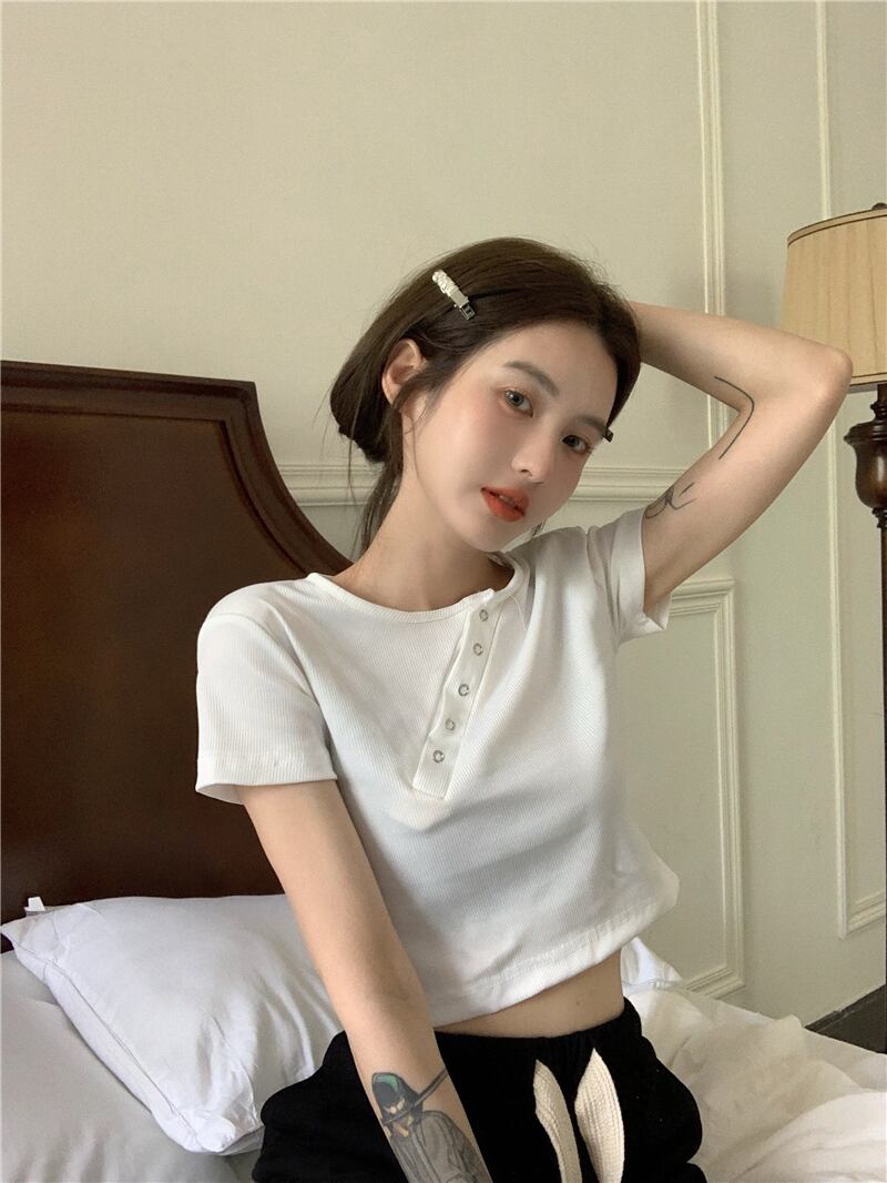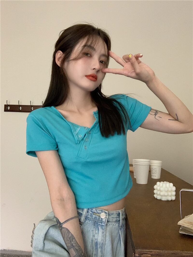 サマーボタンショートTシャツ 夏物 モンロー18594286991