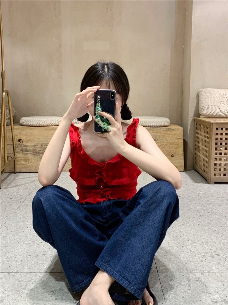ニットサマーショートブラウス 大人ガーリー スウィート キュート カジュアル 夏物 モンロー29643128220