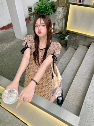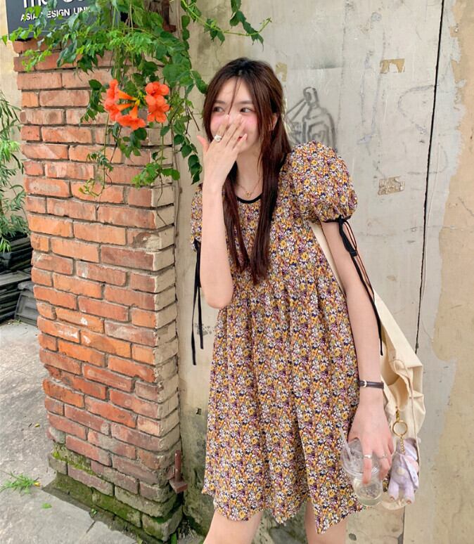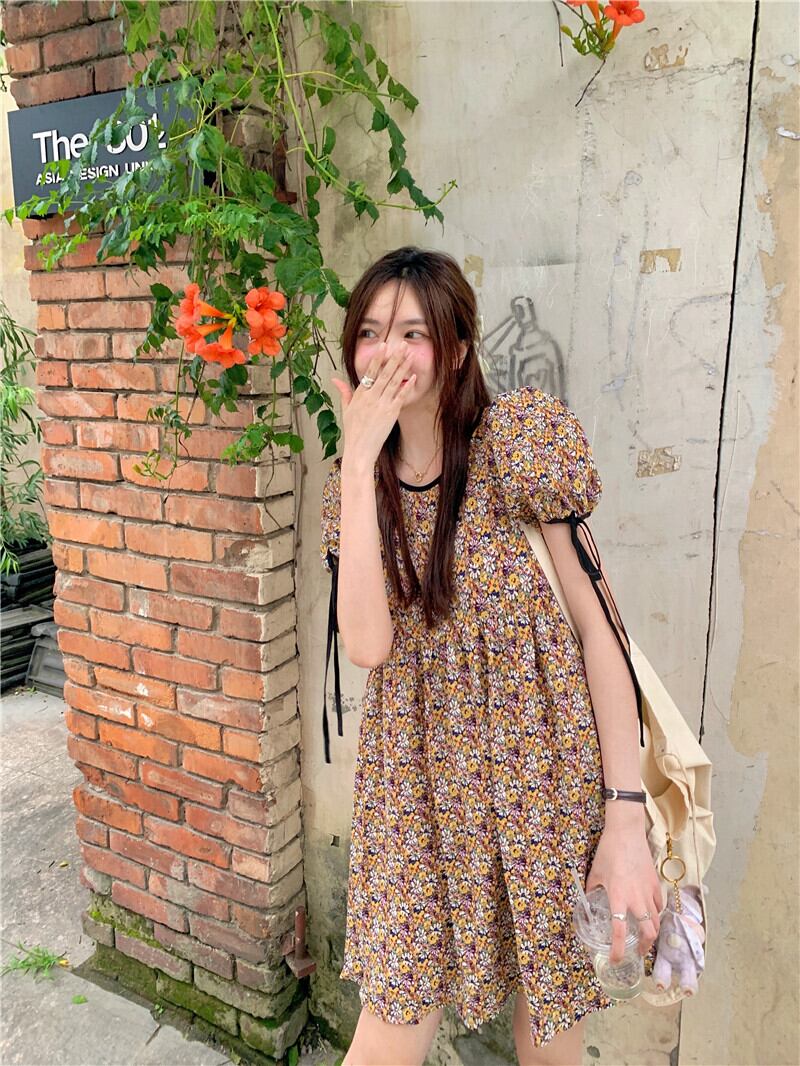 スリーブフローラルドレス サマースタイルウェストスカート 大人ガーリー スウィート キュート カジュアル 夏物 花柄 モンロー80123862933