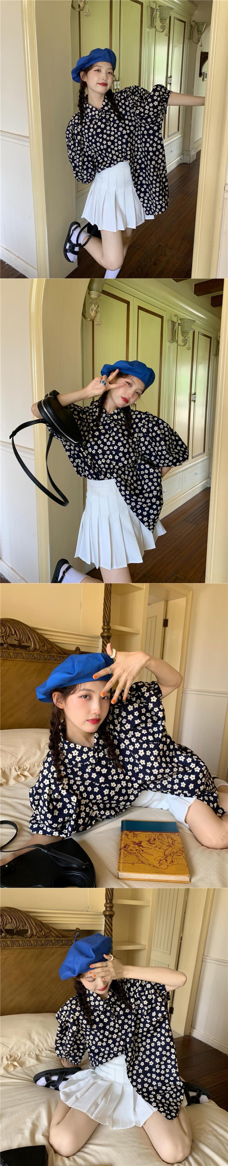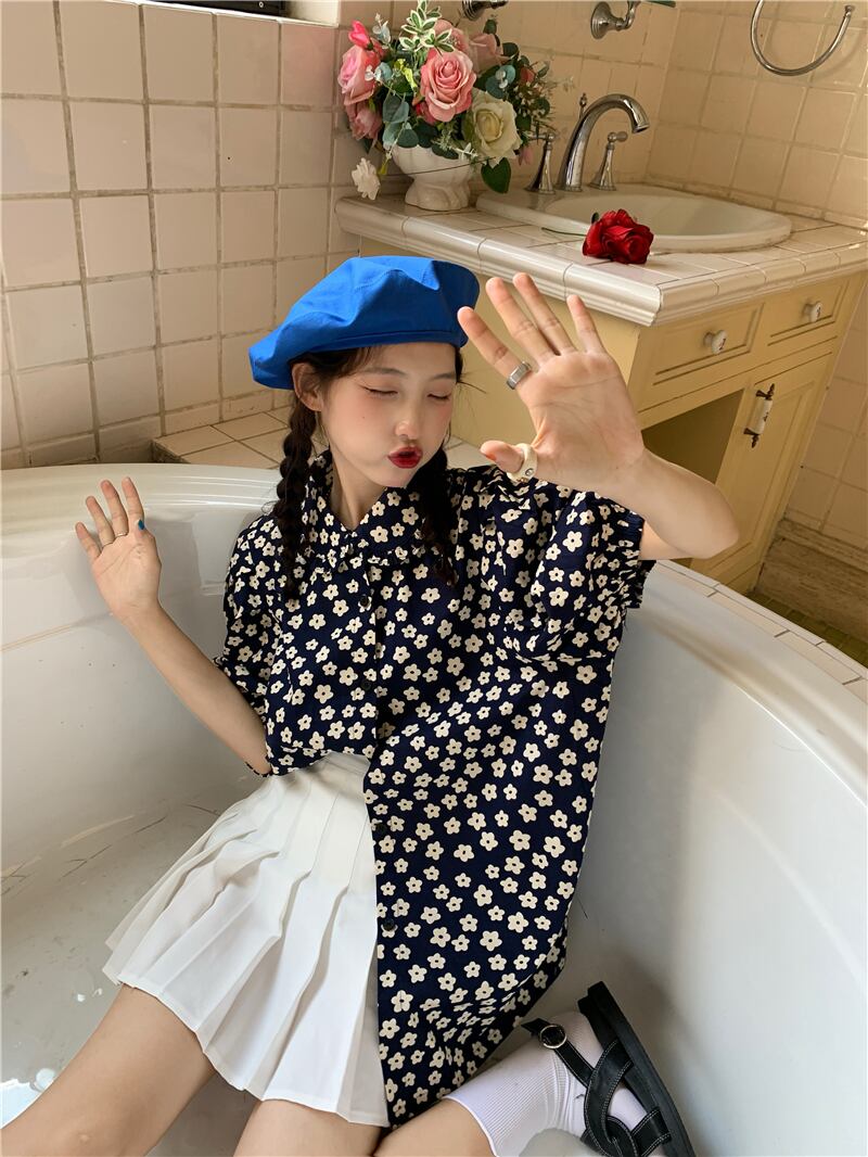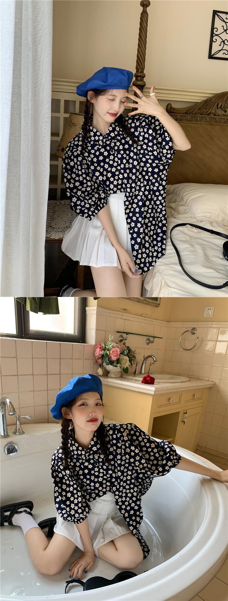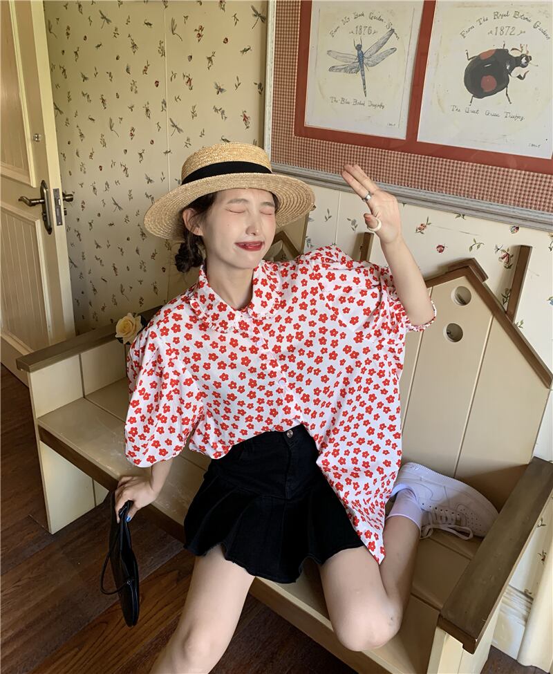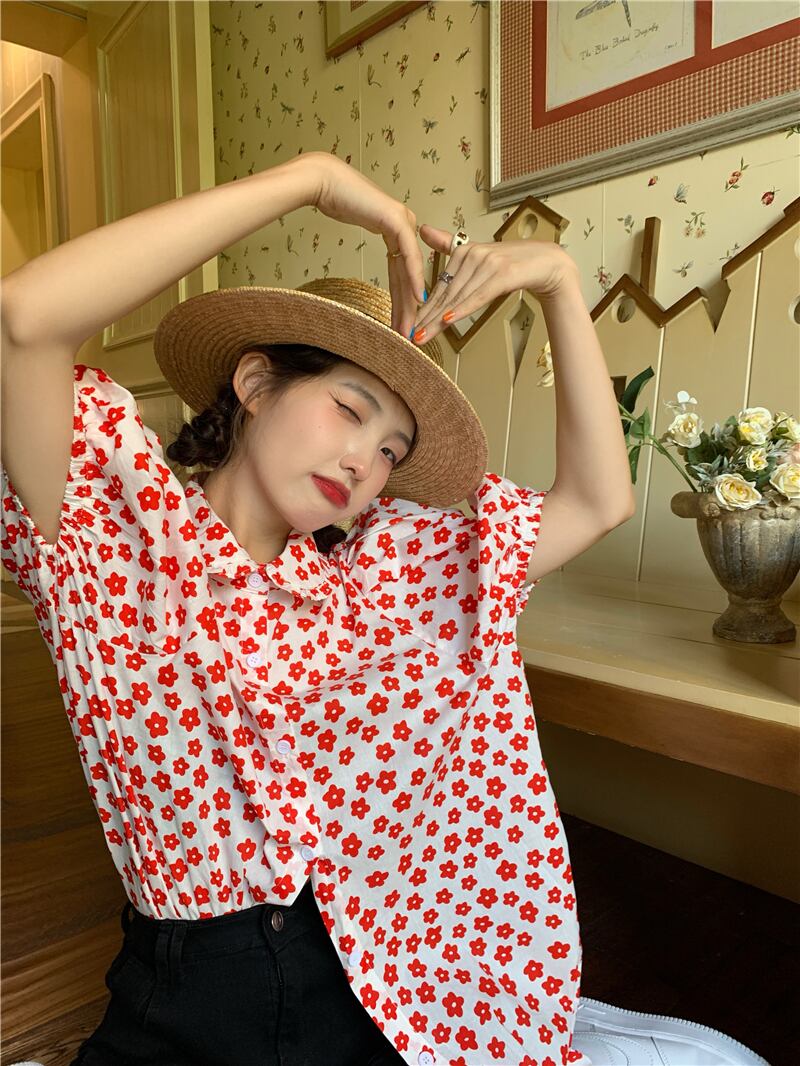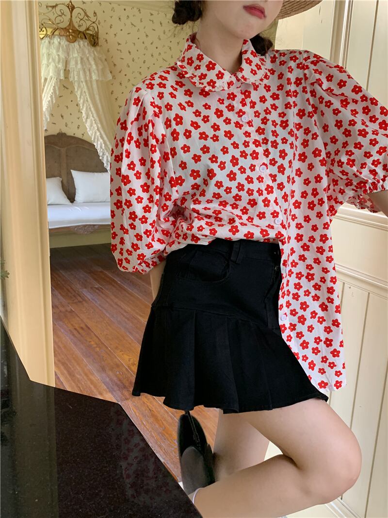 サマースタイルスリーブFlowerデザイン シャツ 大人ガーリー スウィート キュート カジュアル 夏物 フラワーデザイン モンロー15126259864