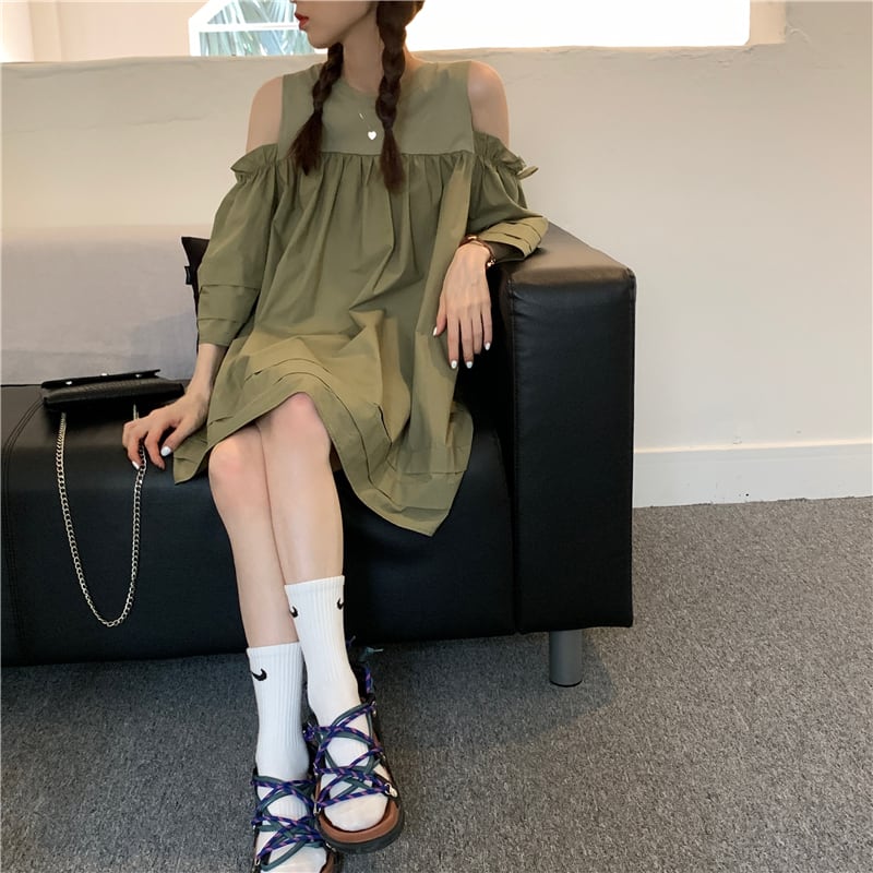 スタイルルーズドレス サマーホワイトラウンドネックスカート 夏物 Oネック モンロー33156493747