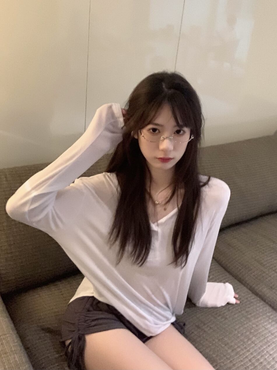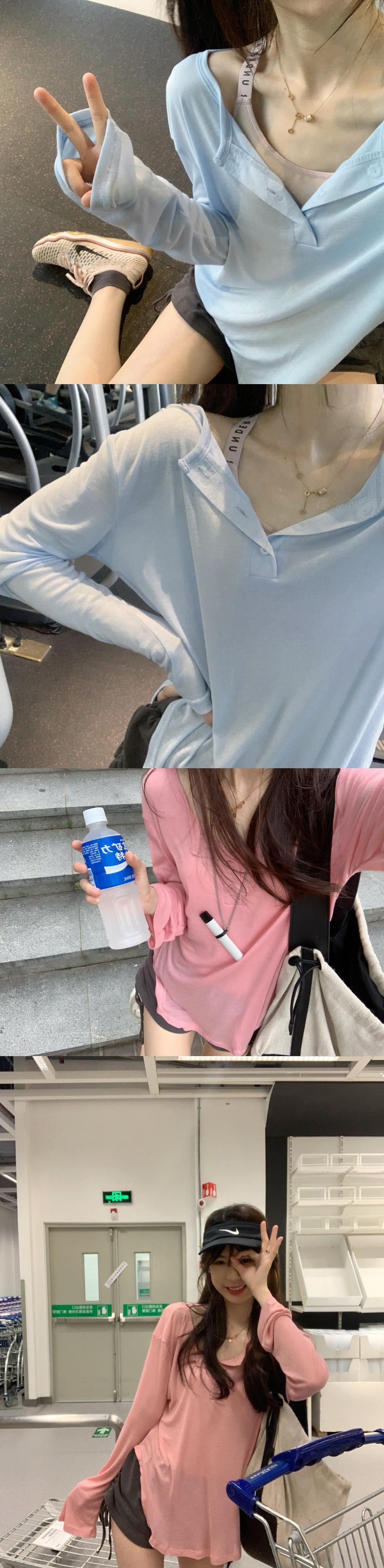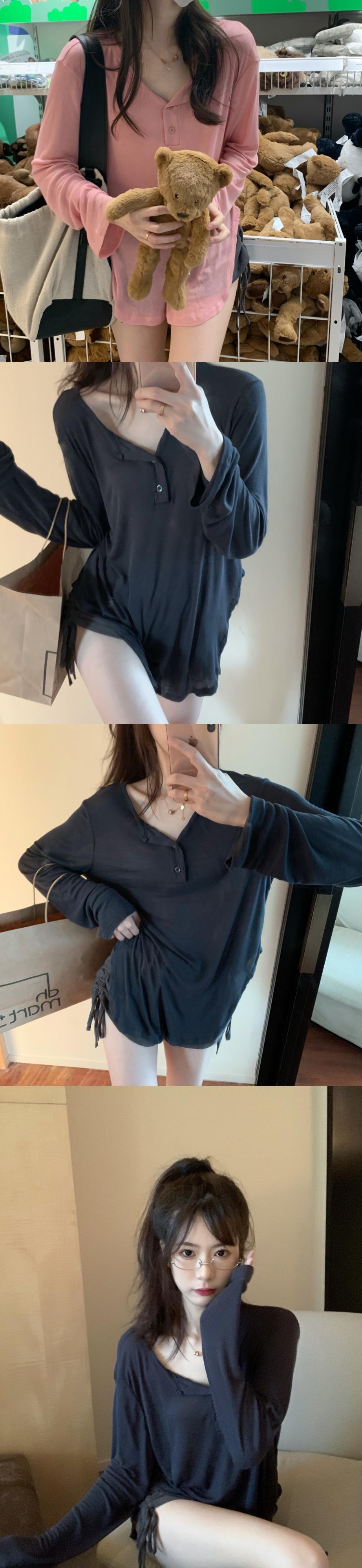 サマーVネックボタン薄手Tシャツ ギャザーショーツ ロング 夏物 ブルマー モンロー72888567288