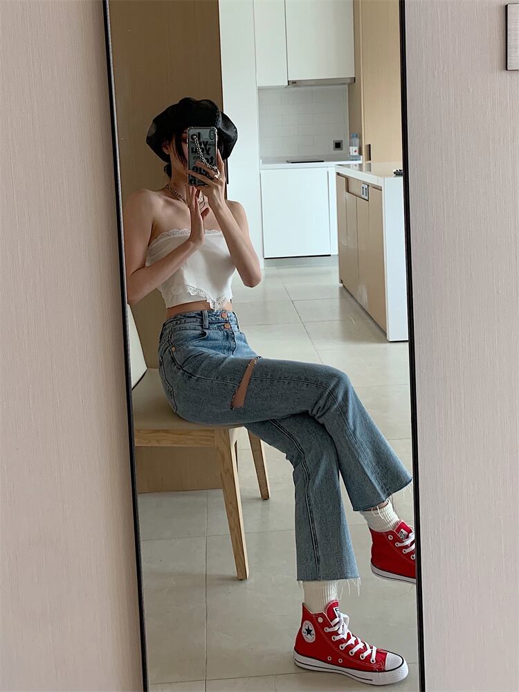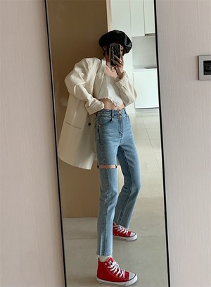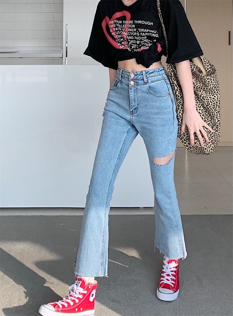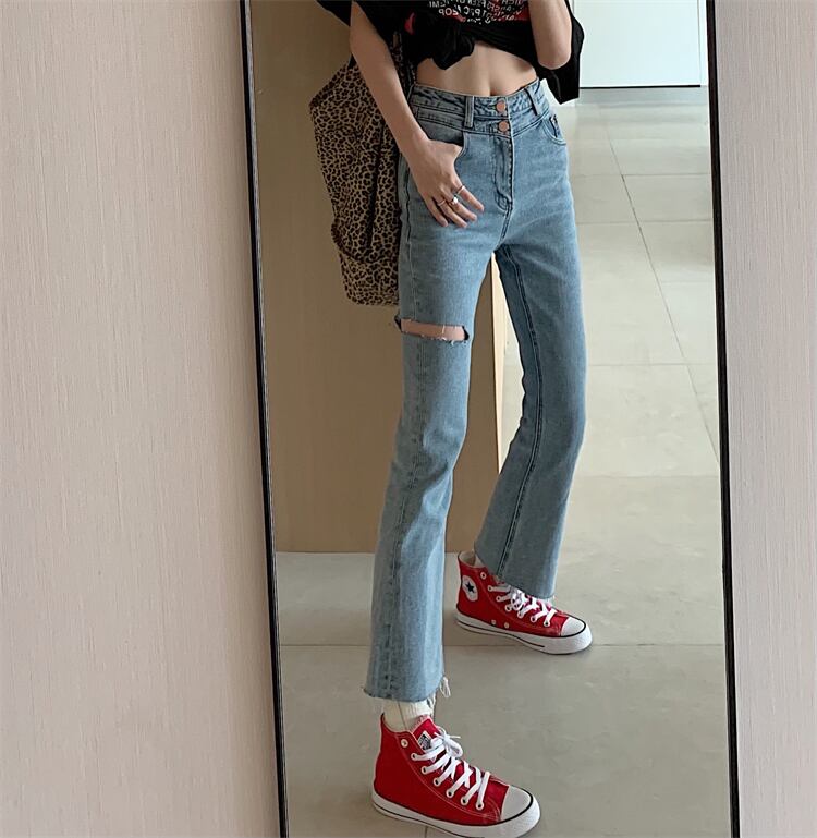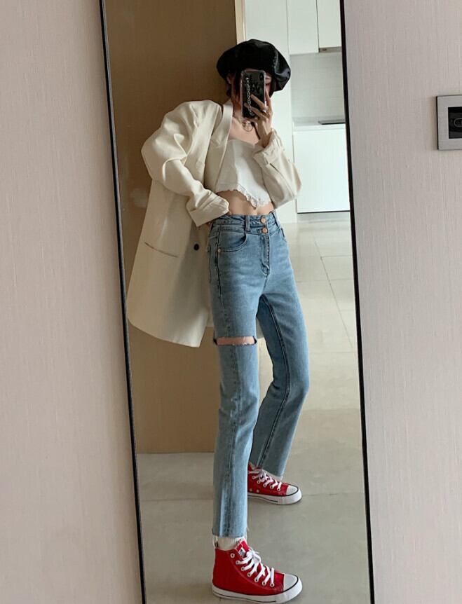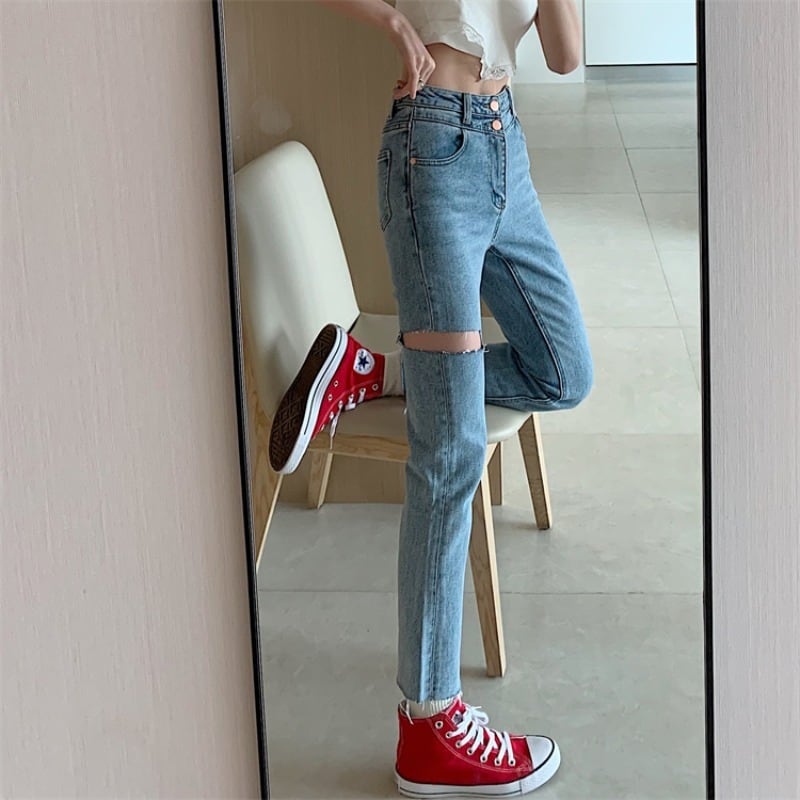 ジーンズ サマー薄手ハイウェストウェストスリムパンツ 夏物 モンロー4426383732