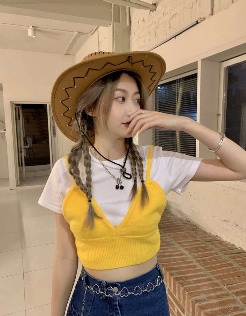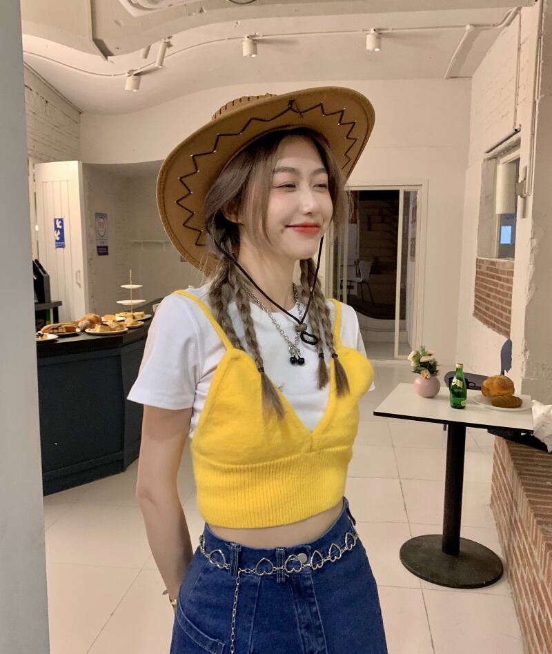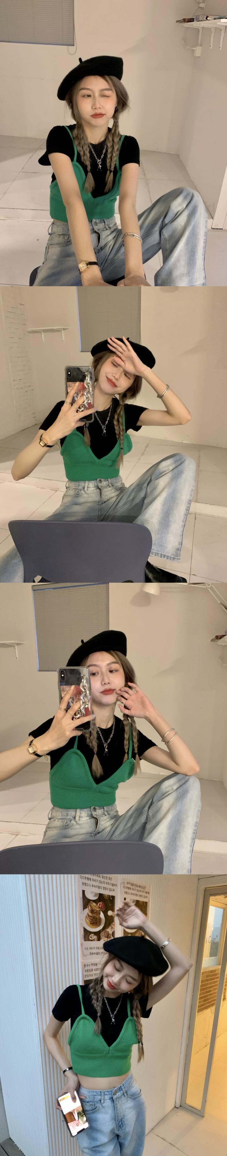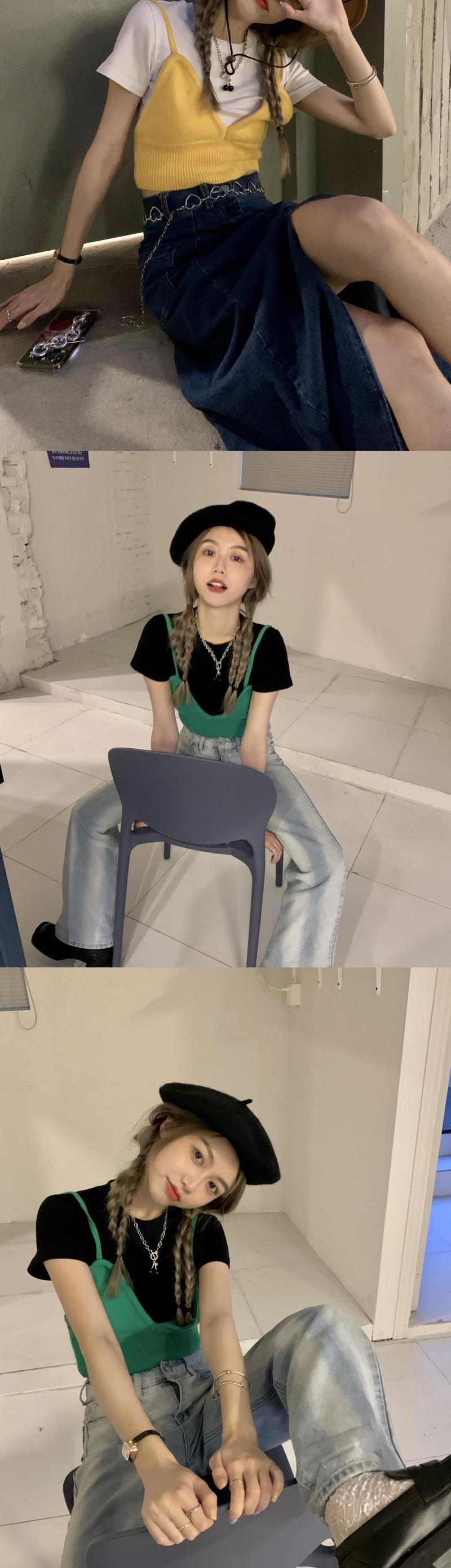 サマーベーシックショートTシャツ カラーVネックニット 夏物 モンロー13464099340