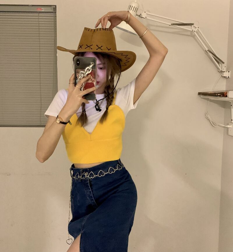 色:白いTシャツ,黒いTシャツ,黄色のベスト,グリーンベスト
