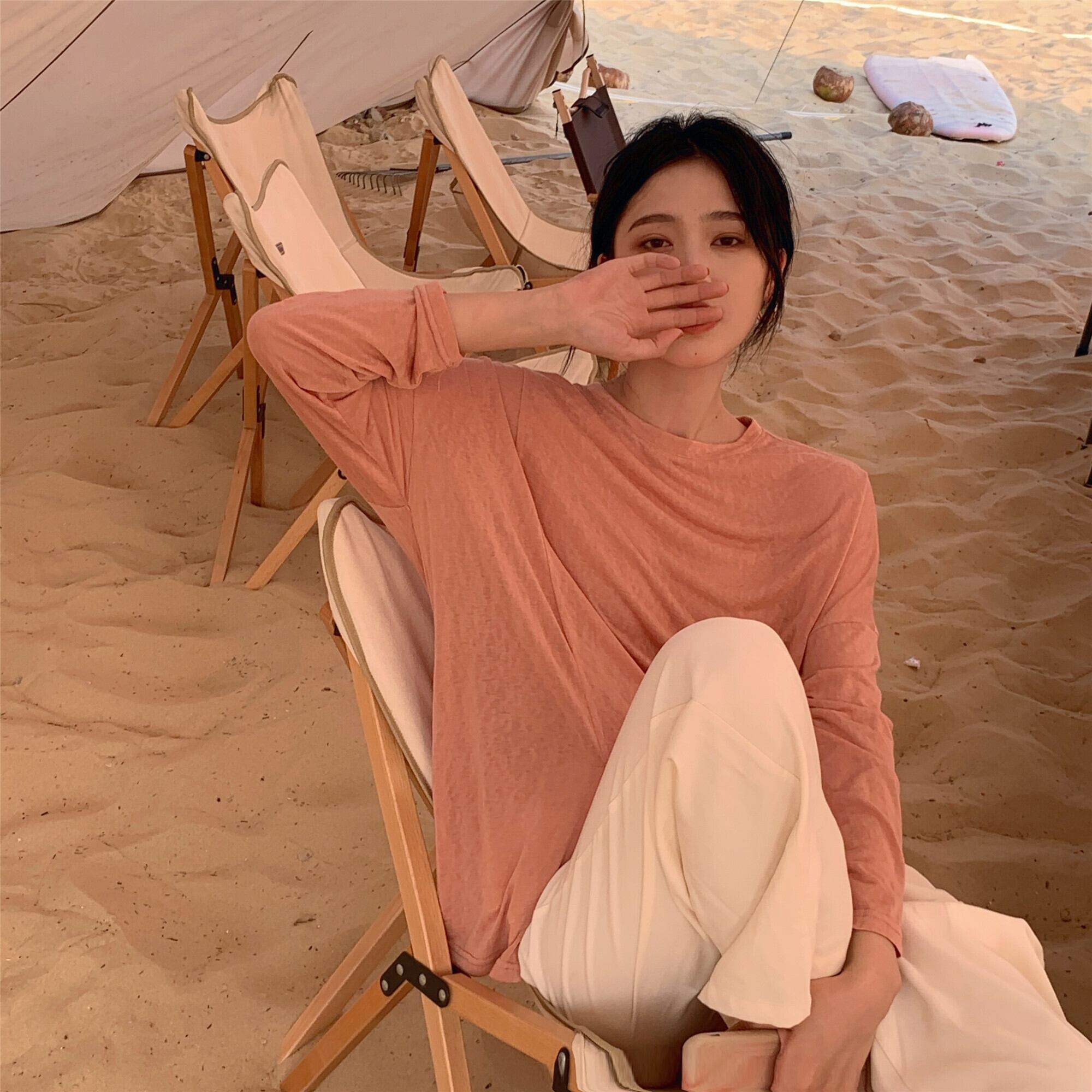 サマー薄手ラウンドネックTシャツ トップス ロング 夏物 Oネック モンロー27400290238