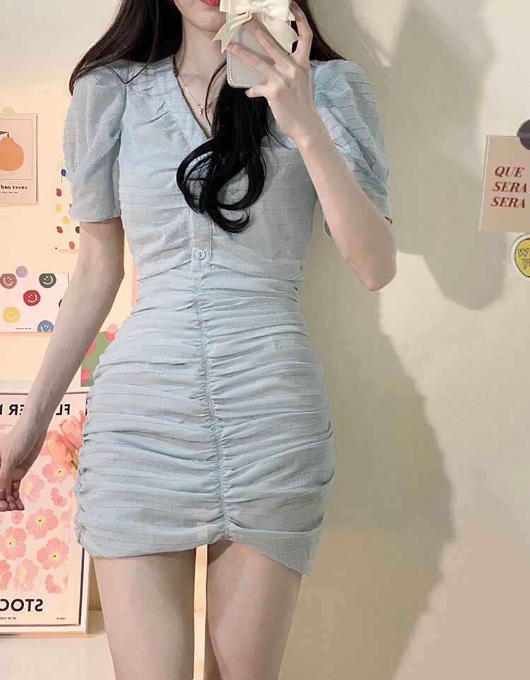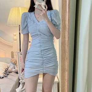 Vネックドレス サマーウェスト薄手スカート ストリート 夏物 モンロー88366146341