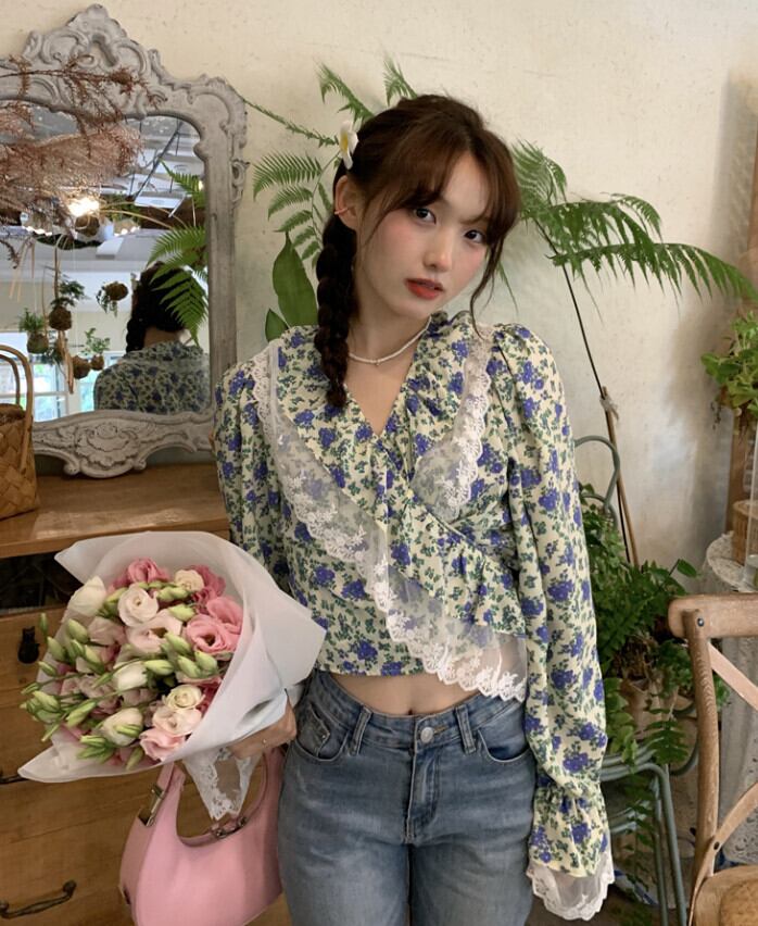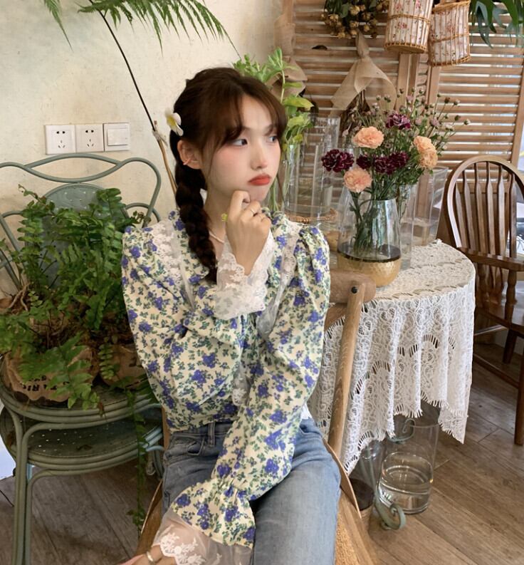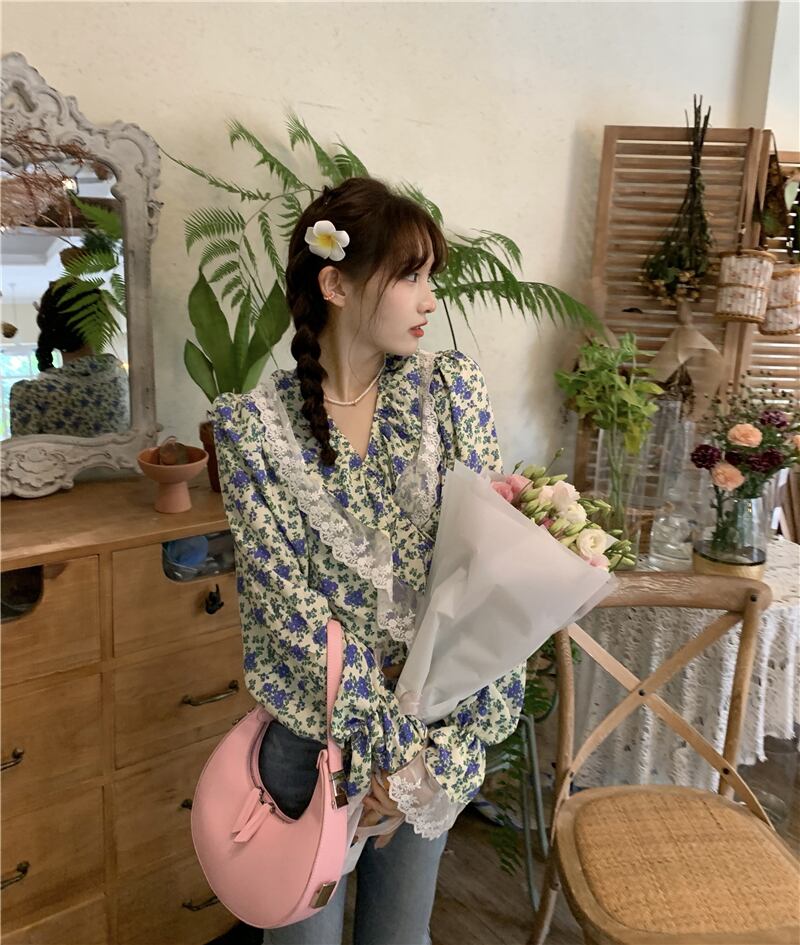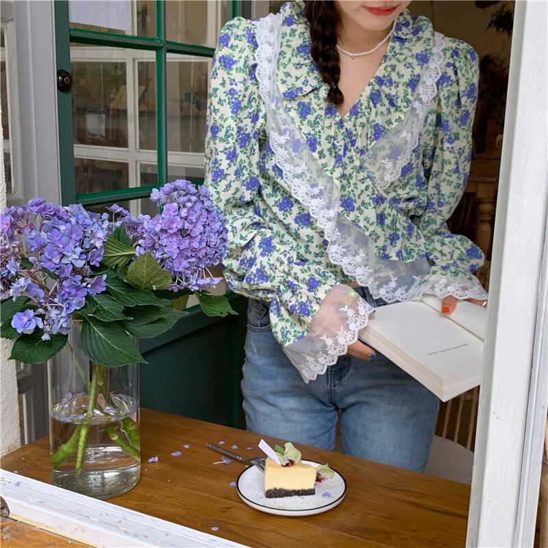レースシフォンフローラルシャツ サマースリーブトップス 夏物 花柄 モンロー5964391912