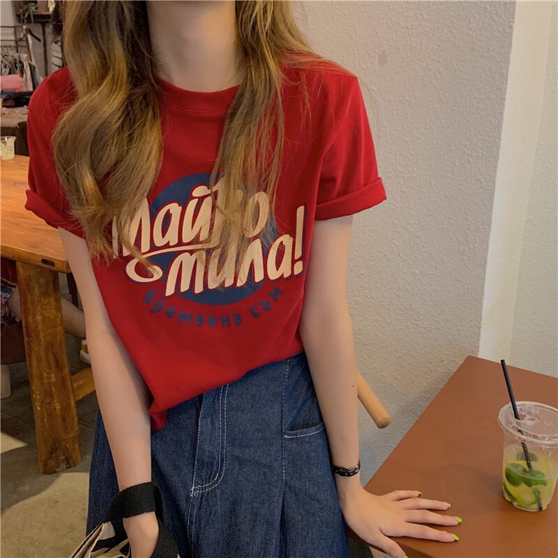 サマープリント柄ルーズTシャツ コットン 夏物 モンロー65124036207