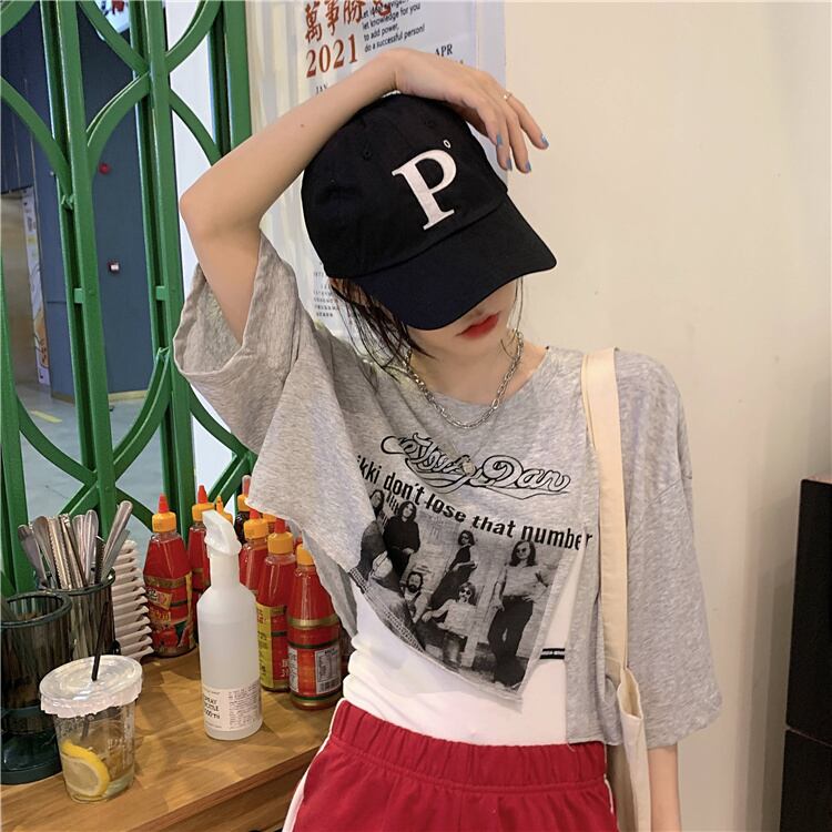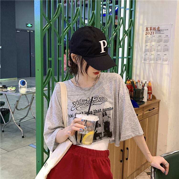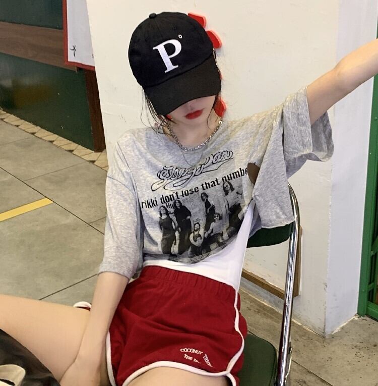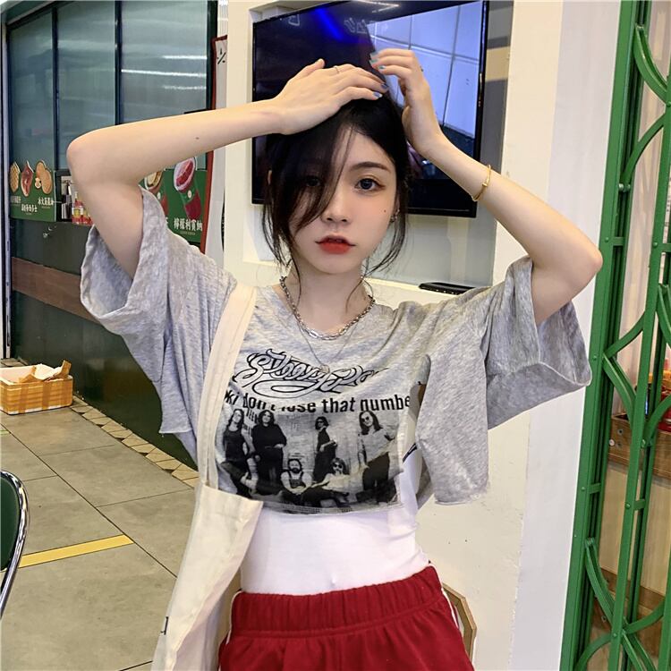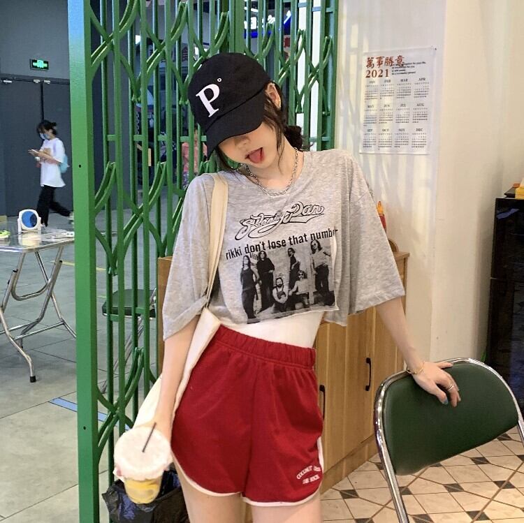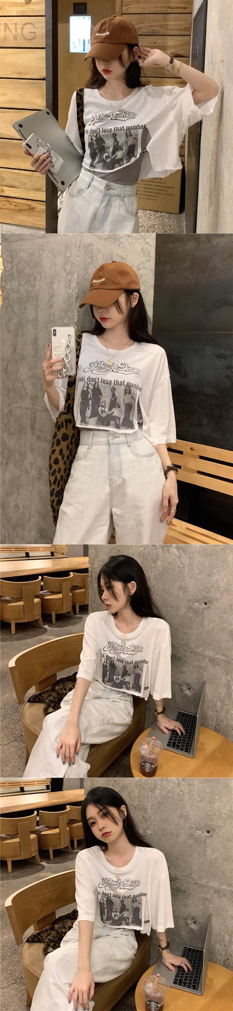 スタイルルーズカジュアルショートTシャツ サマープリントトップス 夏物 モンロー36980421079