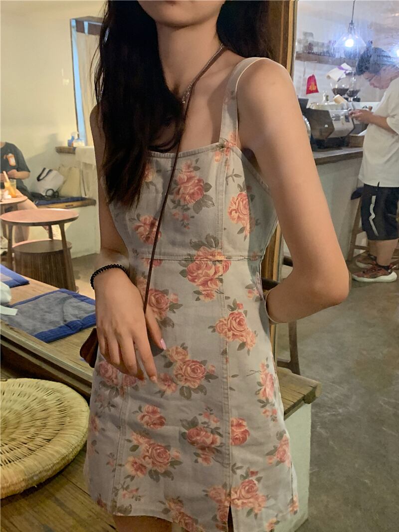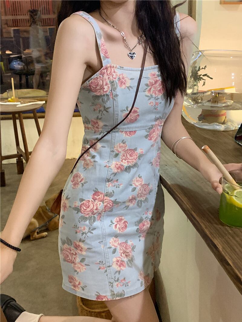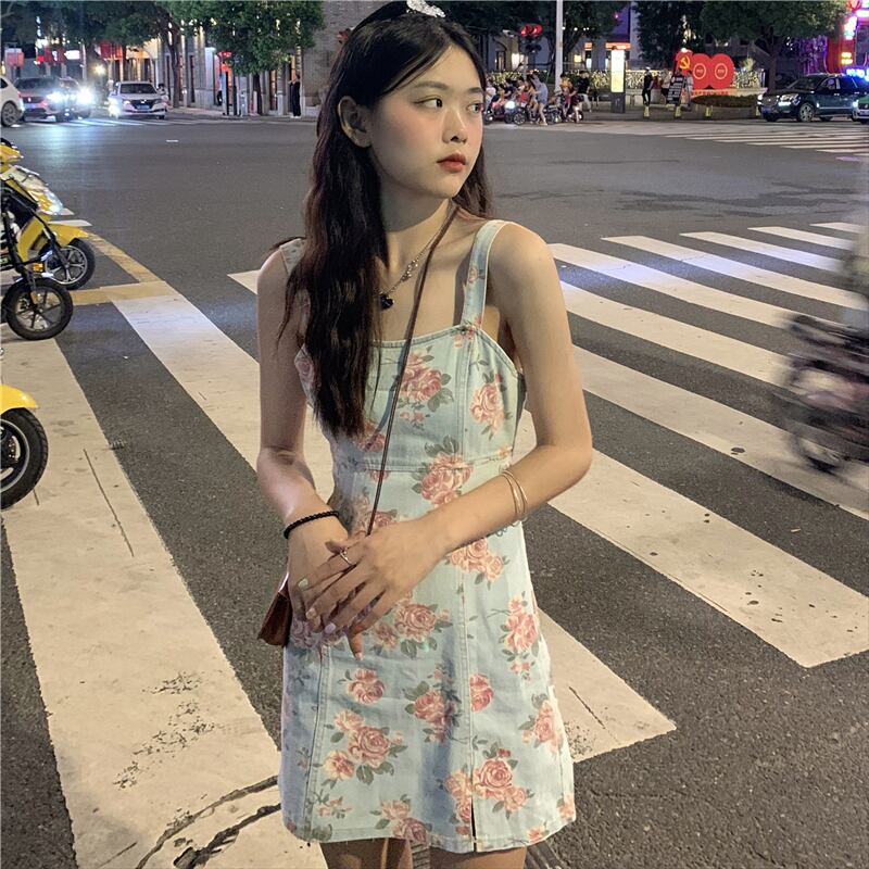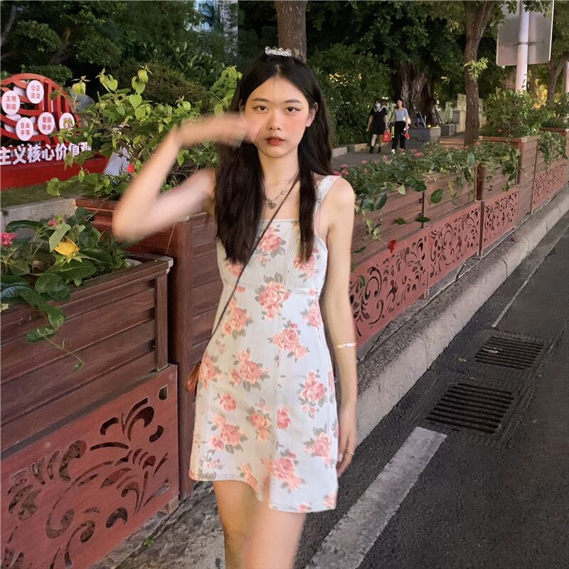 スタンダードプリント柄ドレス サマースタイルスリムスカート レトロ 大人ガーリー スウィート キュート カジュアル 夏物 モンロー20995653524