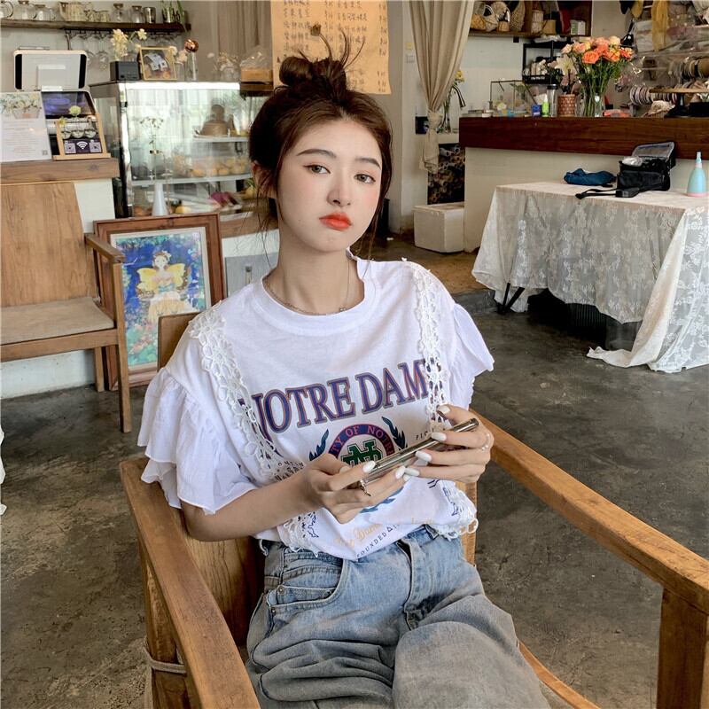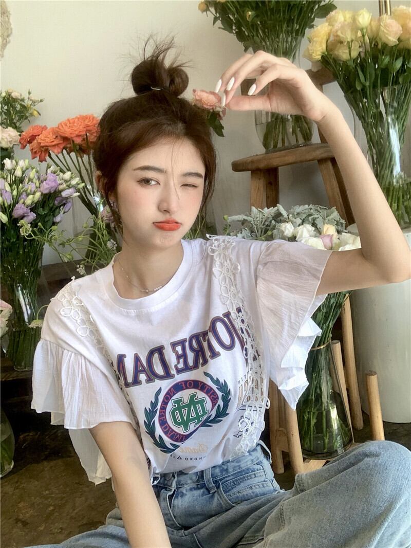 ホワイトルーズTシャツ サマー 大人ガーリー スウィート キュート カジュアル 夏物 モンロー58159784952