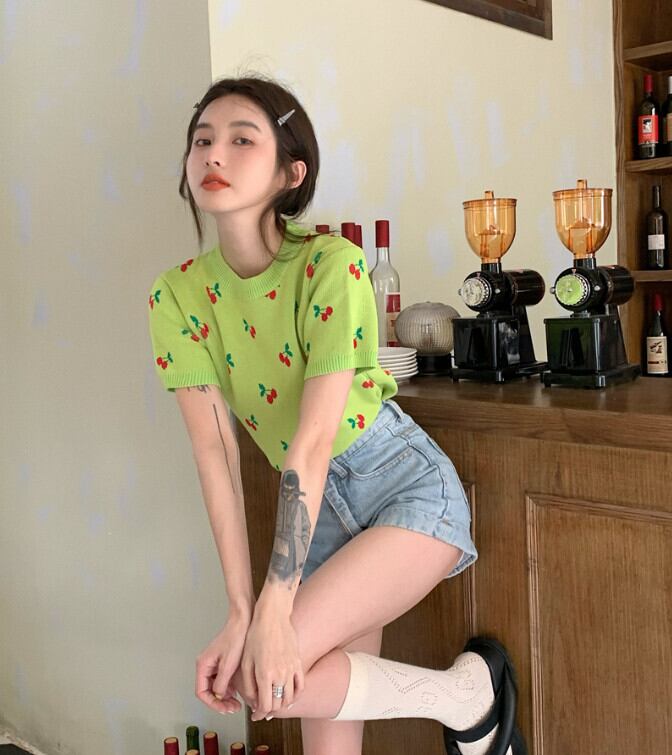 サマー薄手ルーズラウンドネックセーター スタンダードジャケット レトロ 夏物 Oネック モンロー78507115489