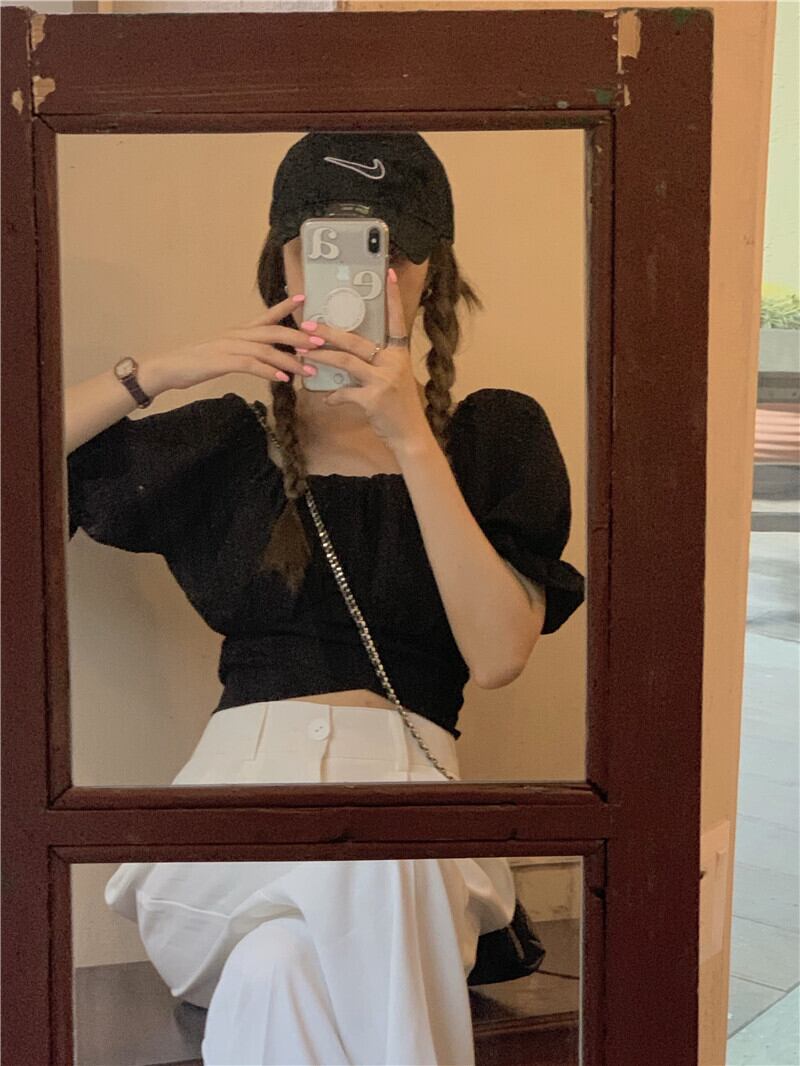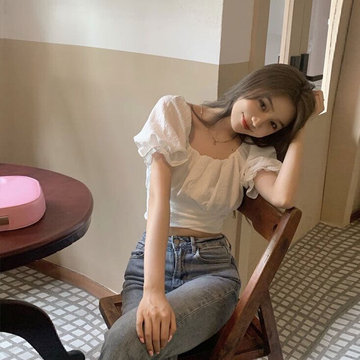 ホワイトショートシャツ サマー薄手ブラウス 大人ガーリー スウィート キュート カジュアル 夏物 スクウェア モンロー23560811616