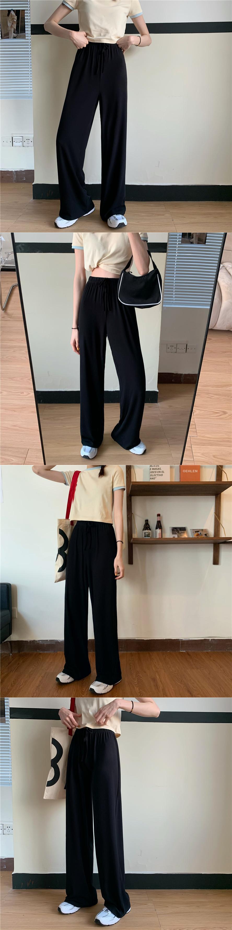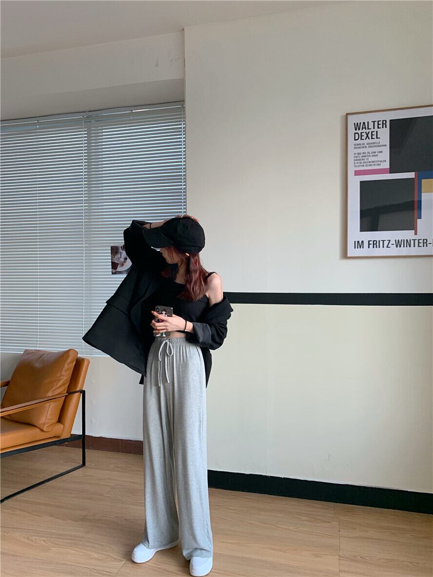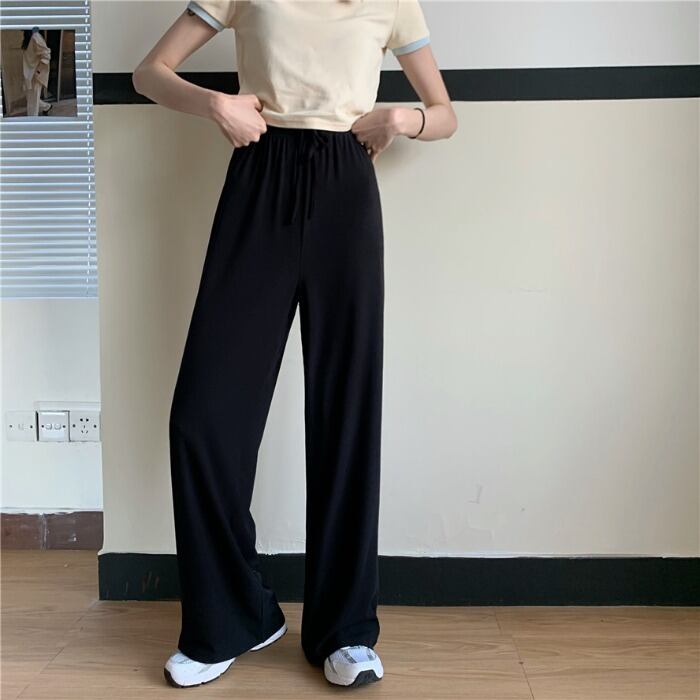 ウェストスリムパンツ スプリングカジュアルレディースルーズブラックワイドレッグ 春物 ワイドパンツ モンロー32000455084