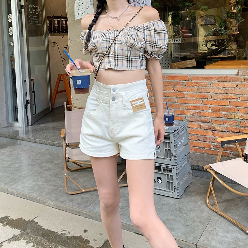 色:オフホワイトショーツ9396,ライトブルーのショーツ9396,チェック柄トップ11533