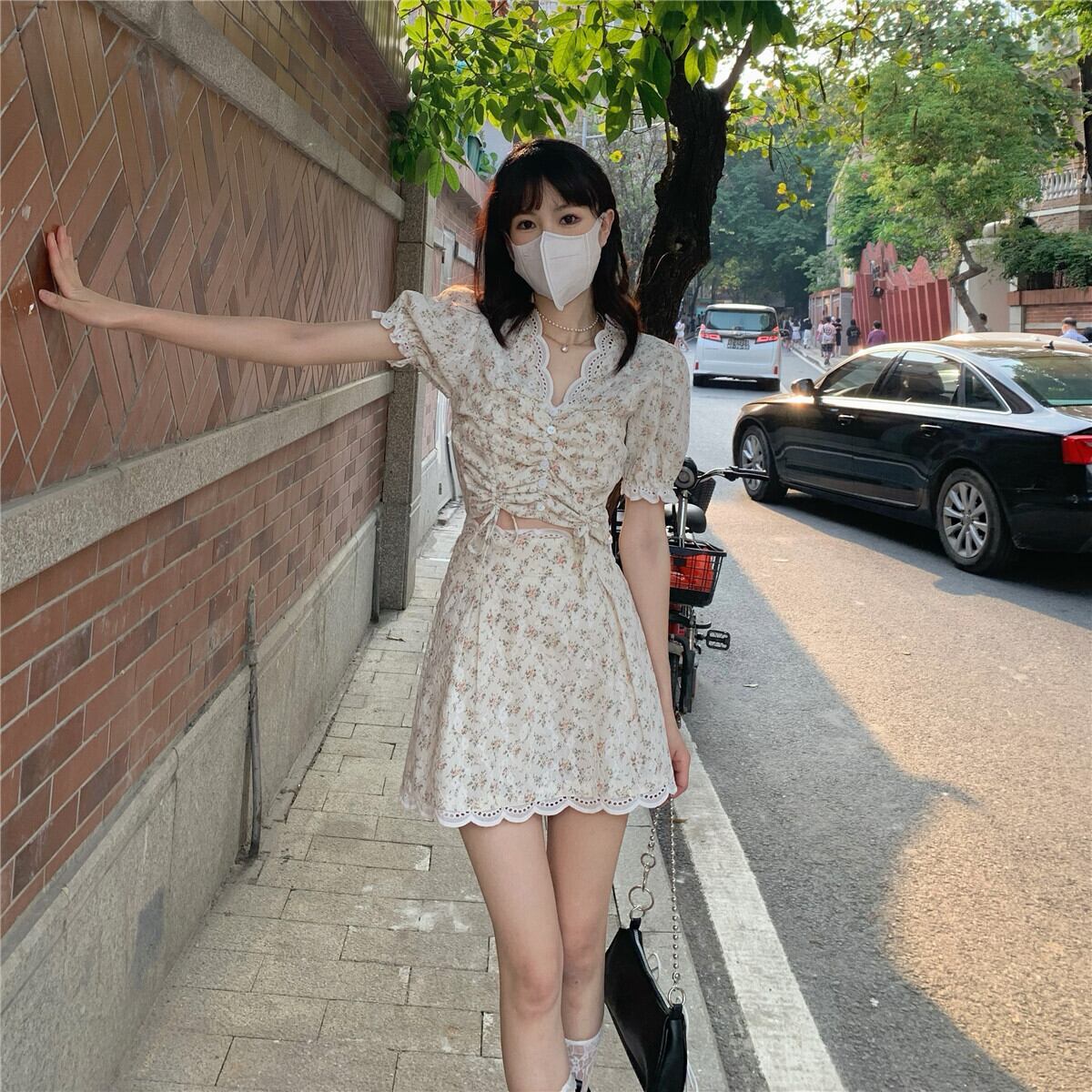 スタイルサマーVネックフローラルショートギャザートップス スカート 夏物 花柄 モンロー72393804762