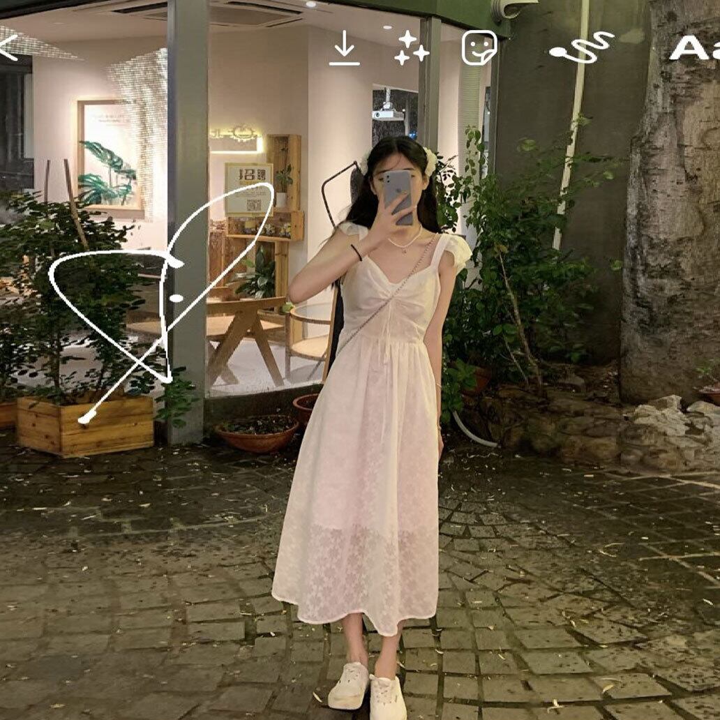 ホワイトドレス サマーウェストロングスカート 大人ガーリー スウィート キュート カジュアル 夏物 モンロー37939988033