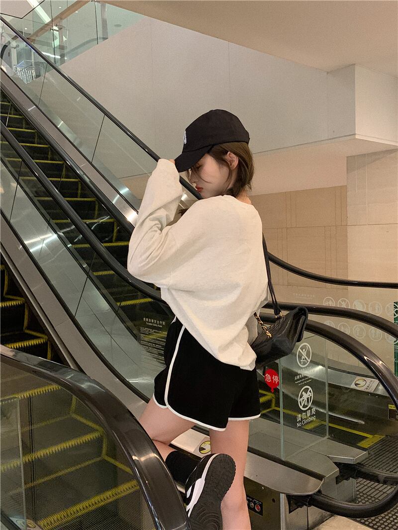 色:ライトグレーのTシャツ,黒のショートパンツ