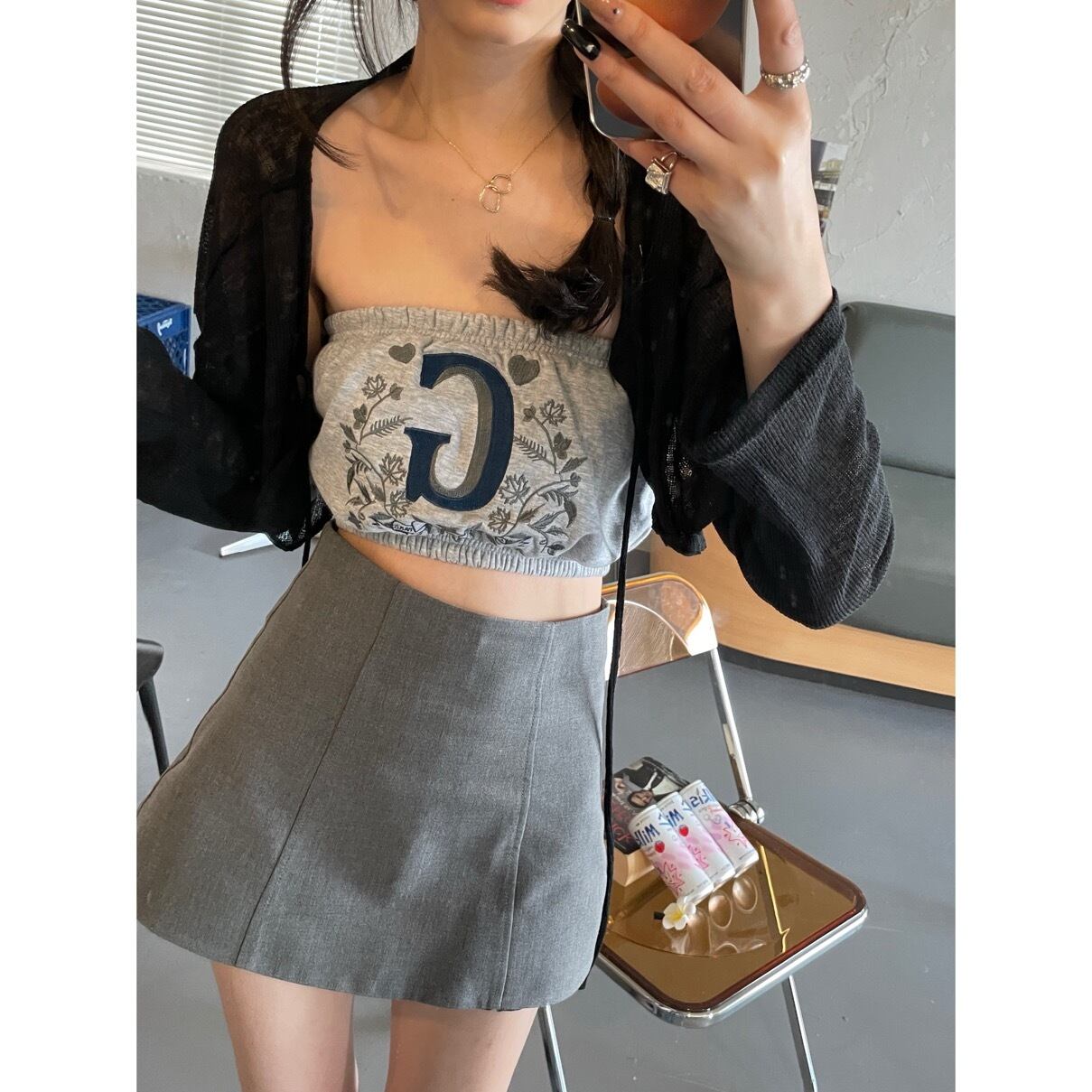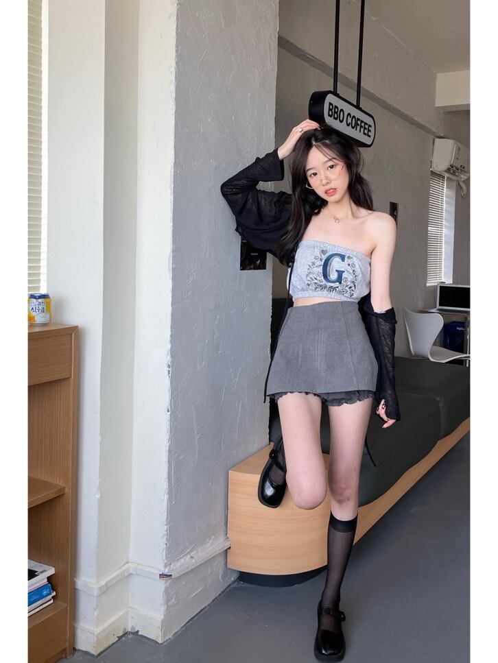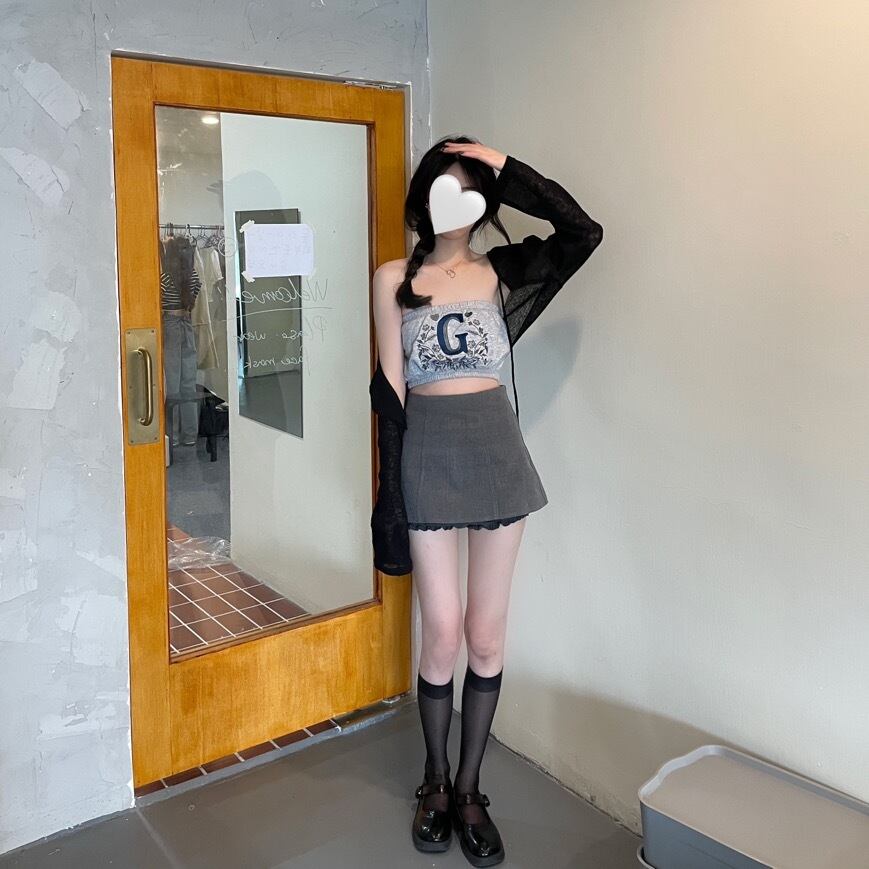 サマープリント柄トップス グレー 夏物 モンロー37991875525