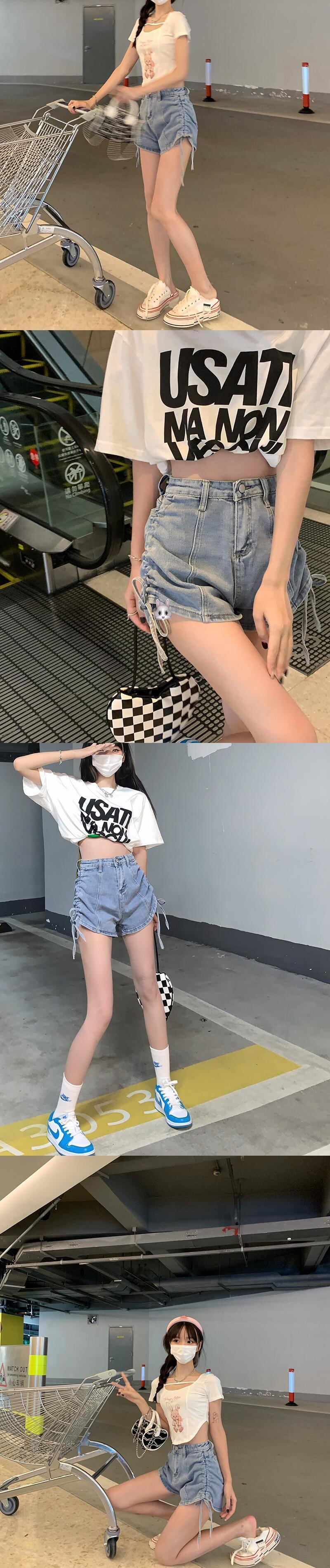 レッドハイウェストウェストスリムジーンズ サマーショーツ パンツ 夏物 ブルマー モンロー70601694082