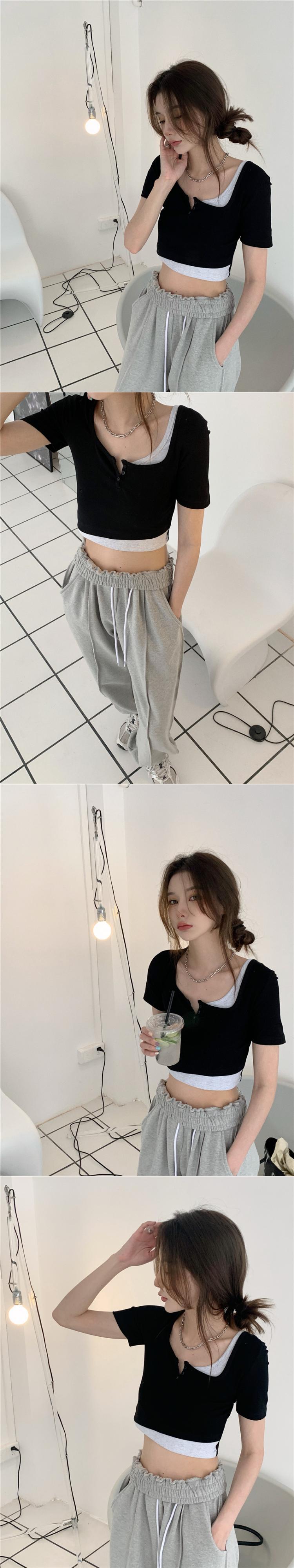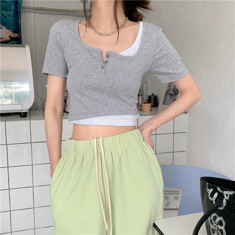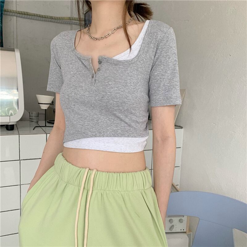 ブラックカラーTシャツ スリムショートサマートップス 夏物 スクウェア モンロー21885791558