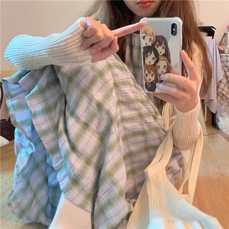サマー格子柄プリーツドレス ニットカーディガン 夏物 モンロー12792925142