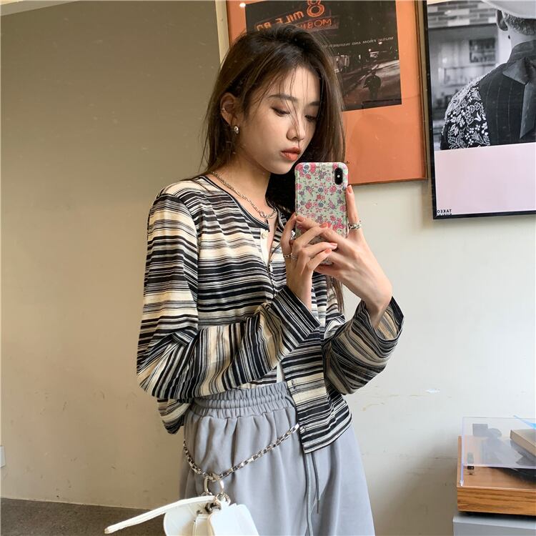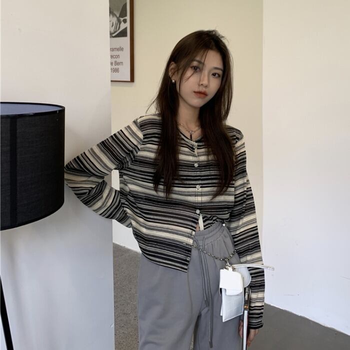 ルーズストライプTシャツ シャツ ショートスプリングサマートップス ロング 春物 夏物 モンロー93335510974