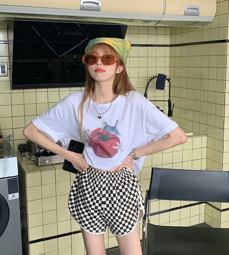 ルーズラウンドネックトップス サマースタイルプリントTシャツ 夏物 Oネック モンロー10927829647