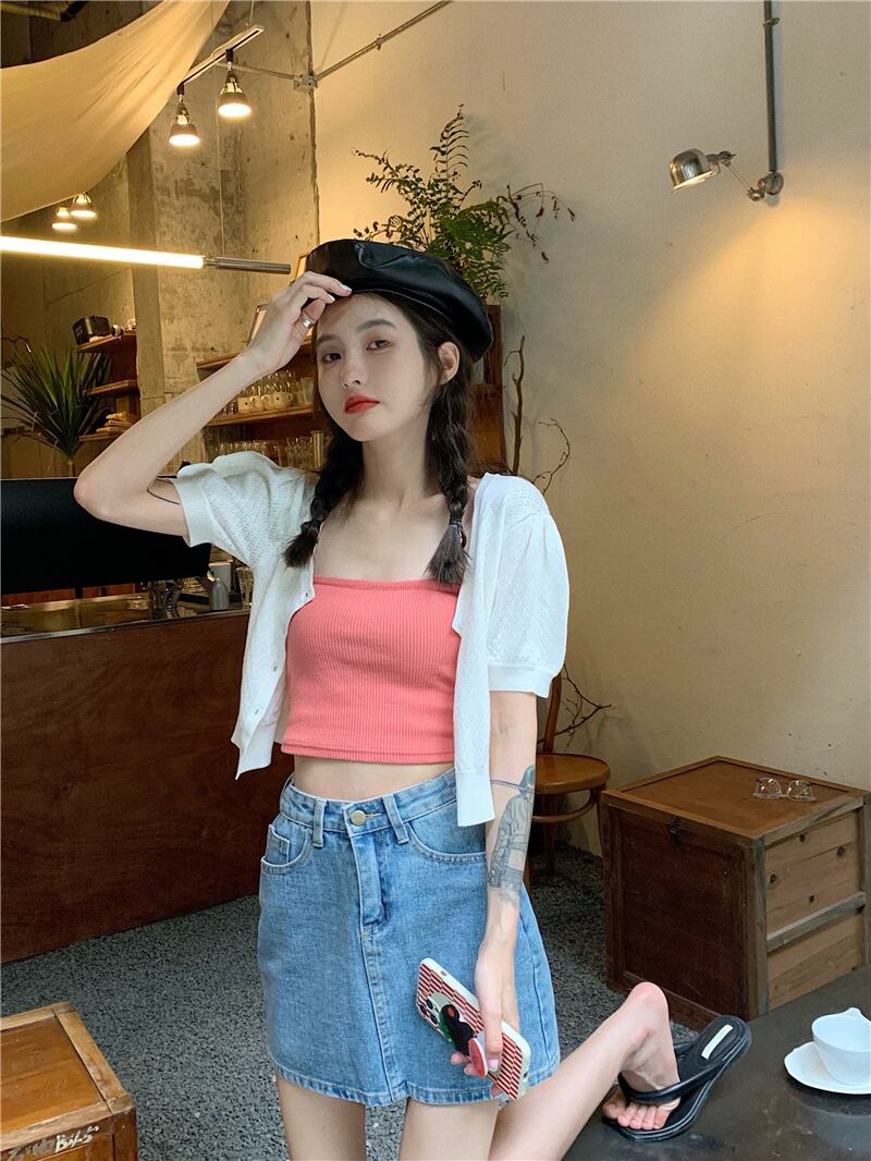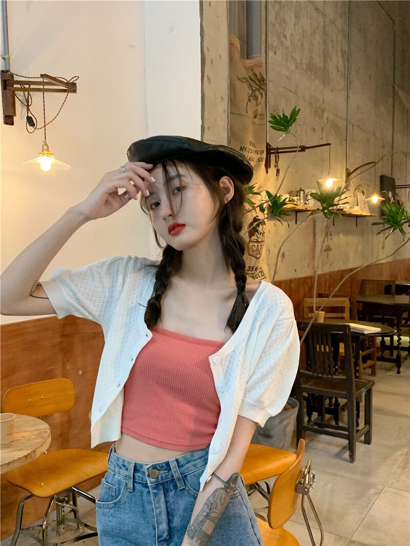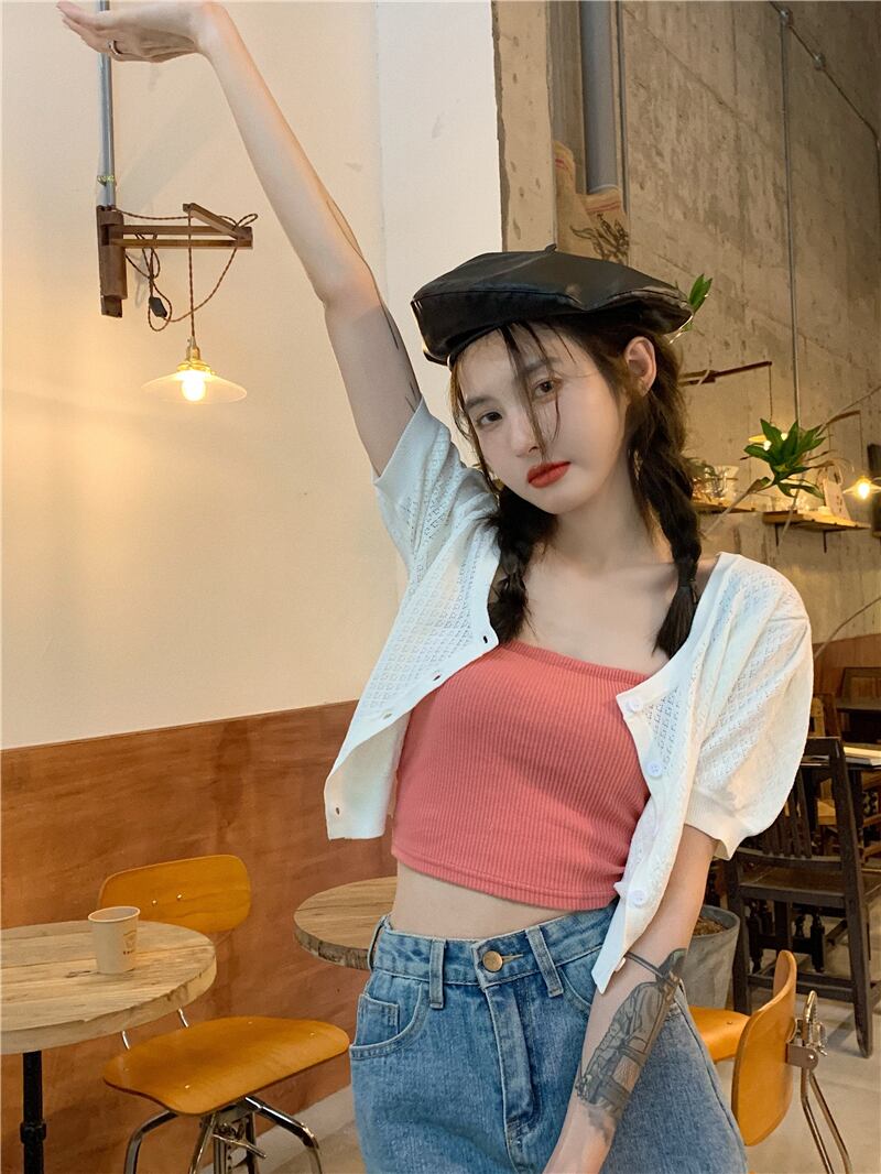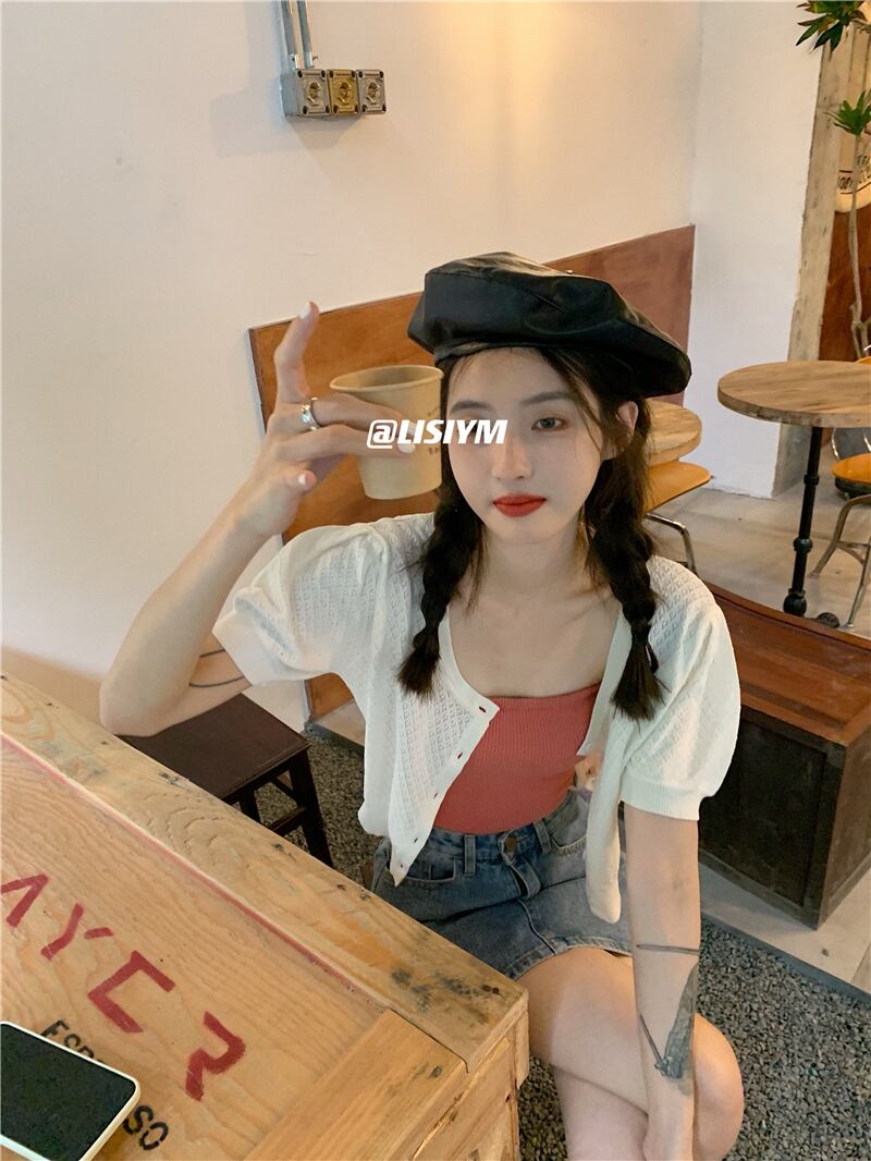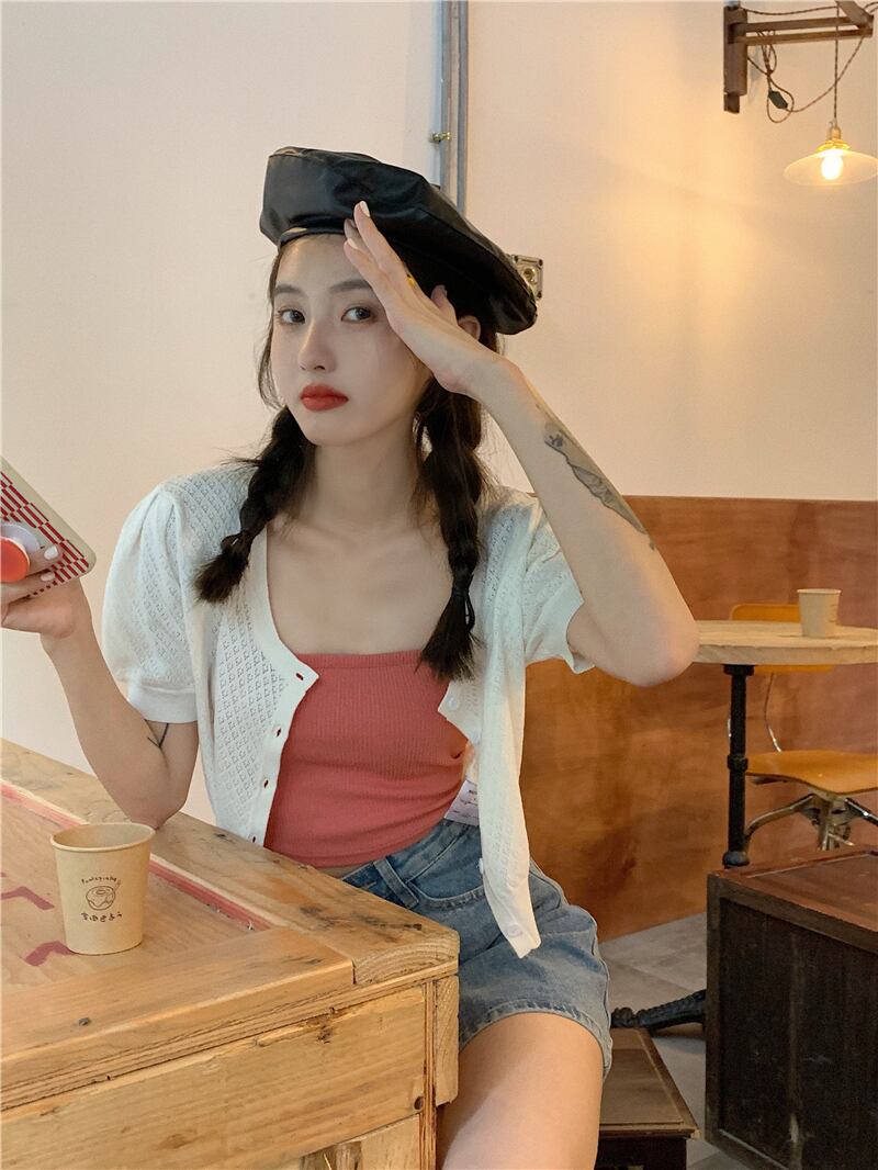 サマースリムショートトップス ニットカーディガン 夏物 モンロー7659422499