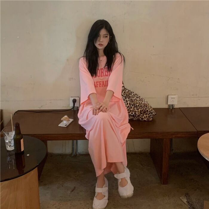 ルーズTシャツ スカート スリムドレス サマー ピンク 大人ガーリー スウィート キュート カジュアル 夏物 モンロー69059700030