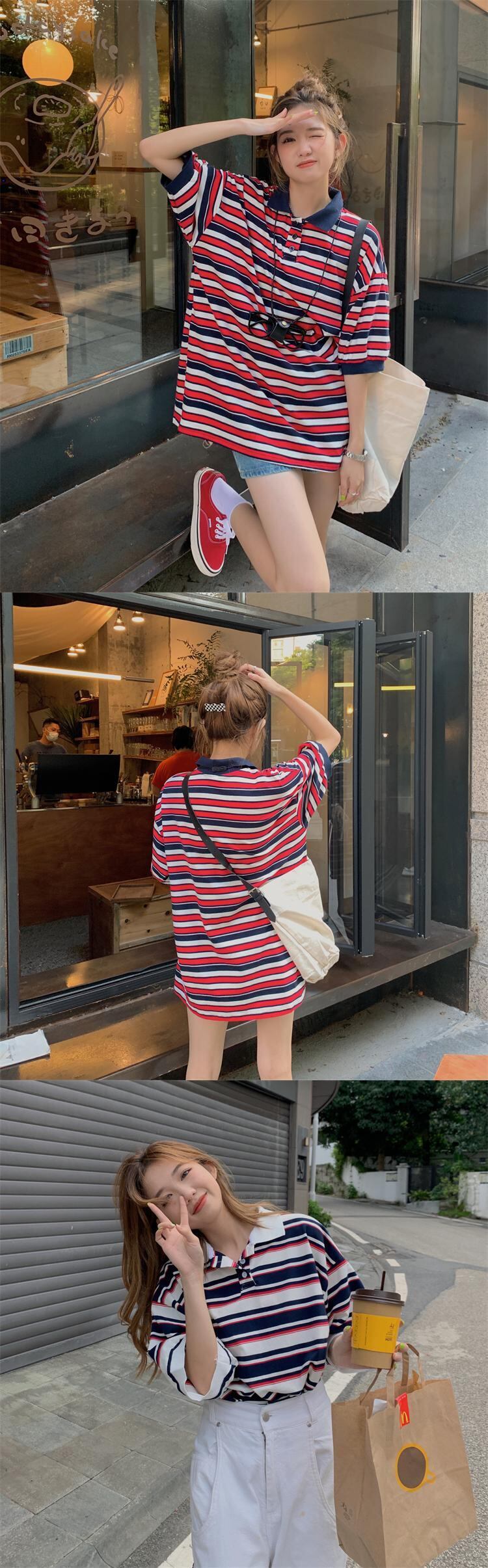 サマールーズカラーストライプTシャツ 夏物 モンロー66823986463