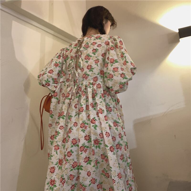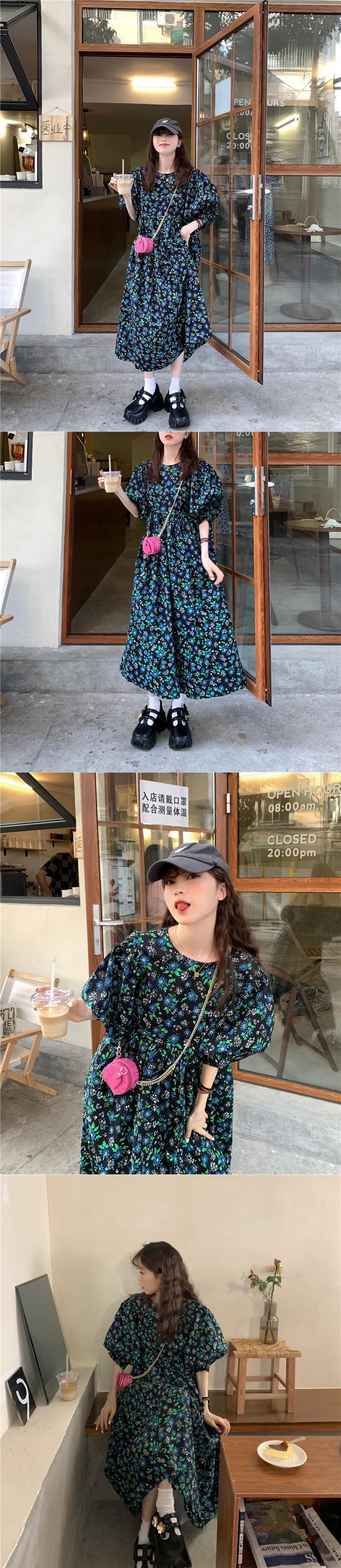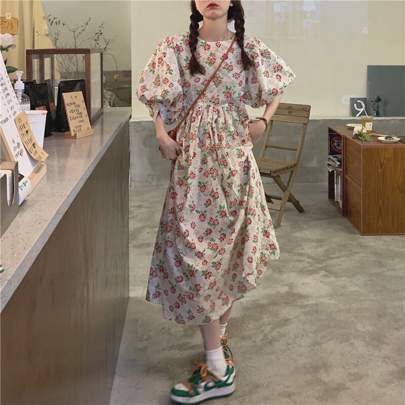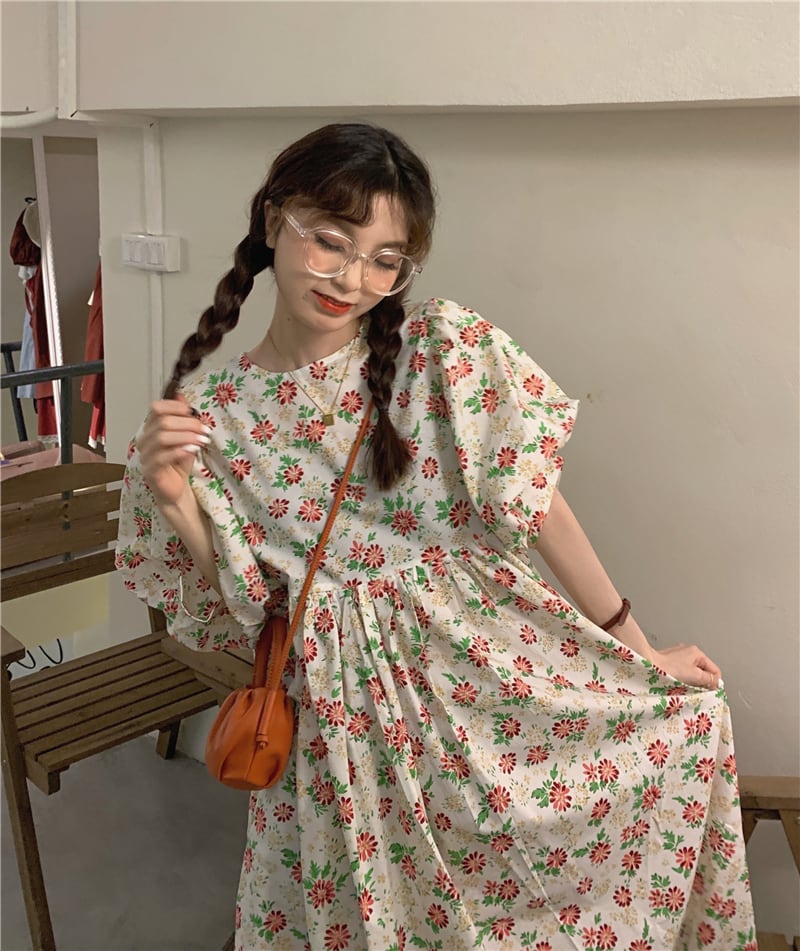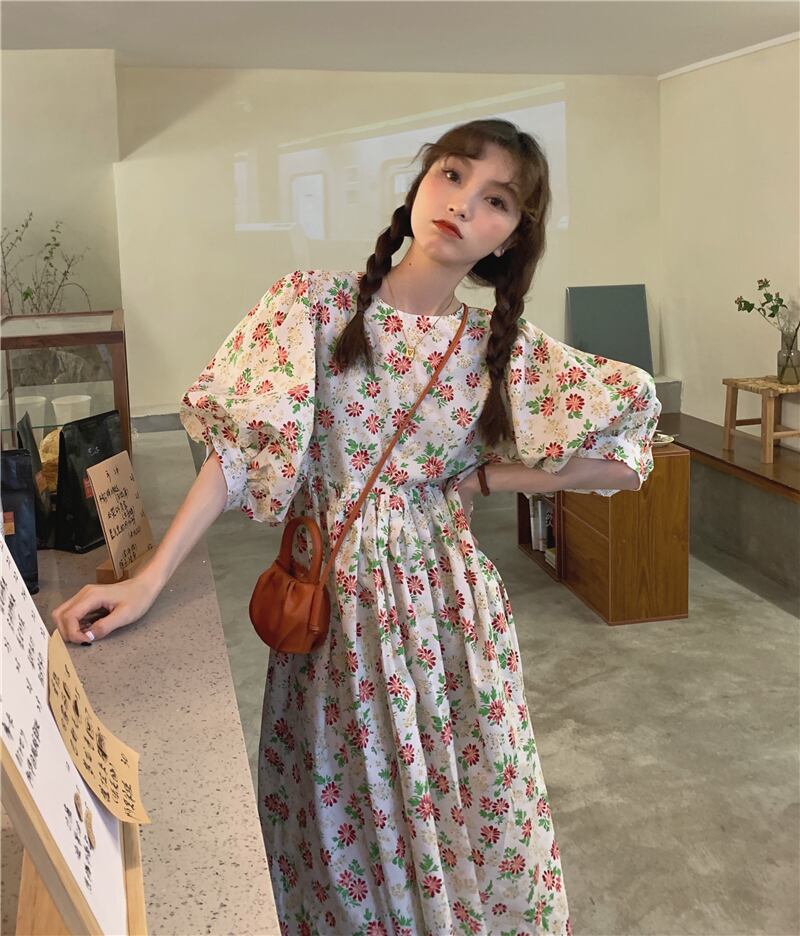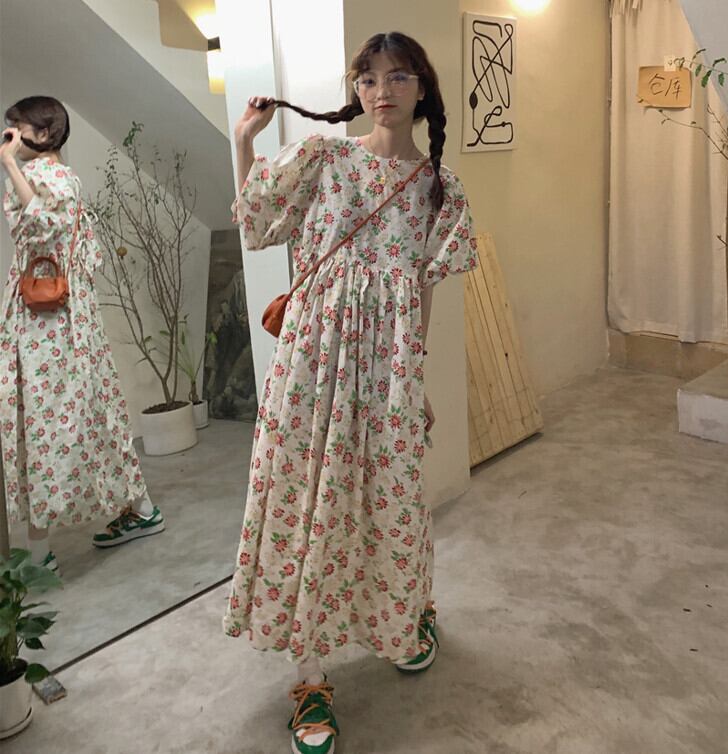 ラウンドネックルーズフローラルドレス サマーウェストスカート 大人ガーリー スウィート キュート カジュアル 夏物 花柄 Oネック モンロー98887204586